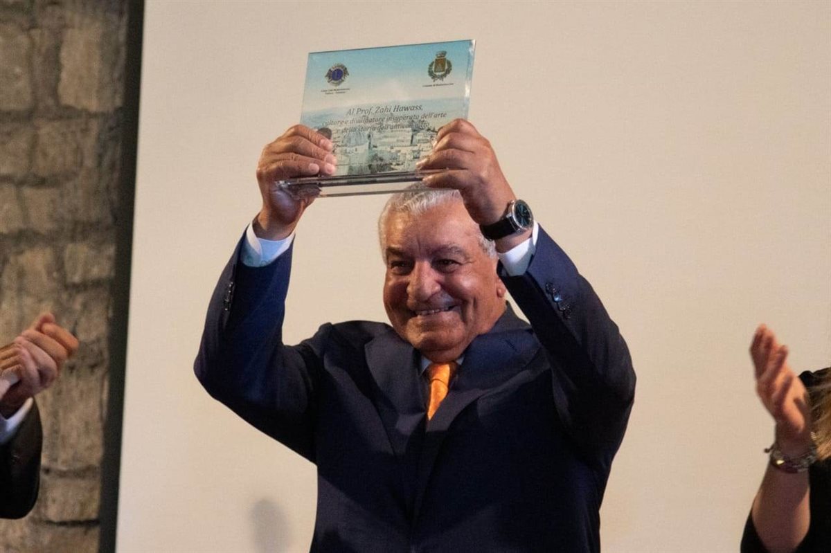 عمدة مدينة "Montefiascone" الإيطالية تكرم زاهي حواس وتسلمه درع مفتاح المدينة