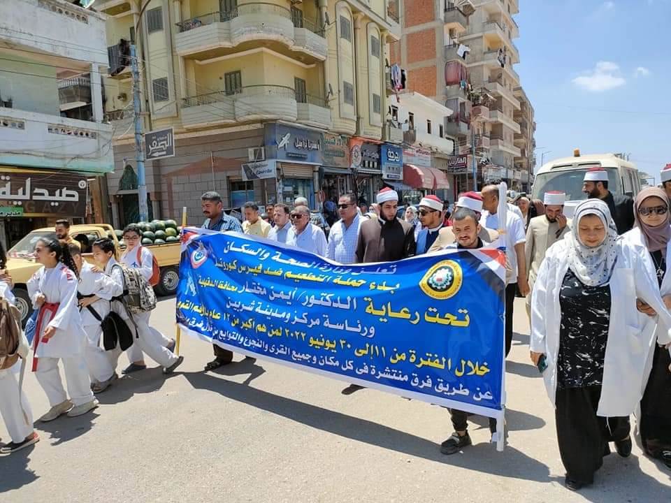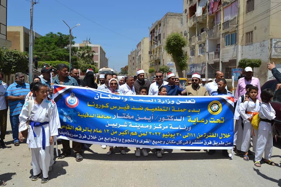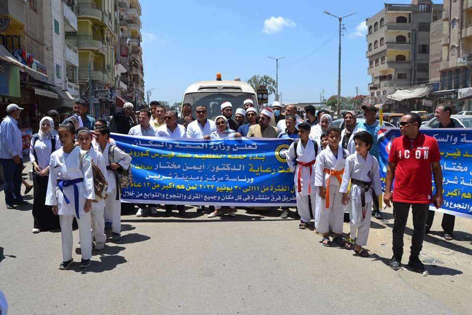 وتم تنفيذ المسيرة في عدد من شوارع مدينة شربين، تحت إشراف طه أبو العيش، وطه السباعي، نائبا رئيس المركز، وبالتعاون مع الإدارة الصحية، وإدارة الأوقاف، والشباب والرياضة، والتضامن الاجتماعي، وذلك تمهيدًا لتواجد الفرق الطبية في الشوارع، غدًا الأربعاء، على مستوى مركز ومدينة شربين.