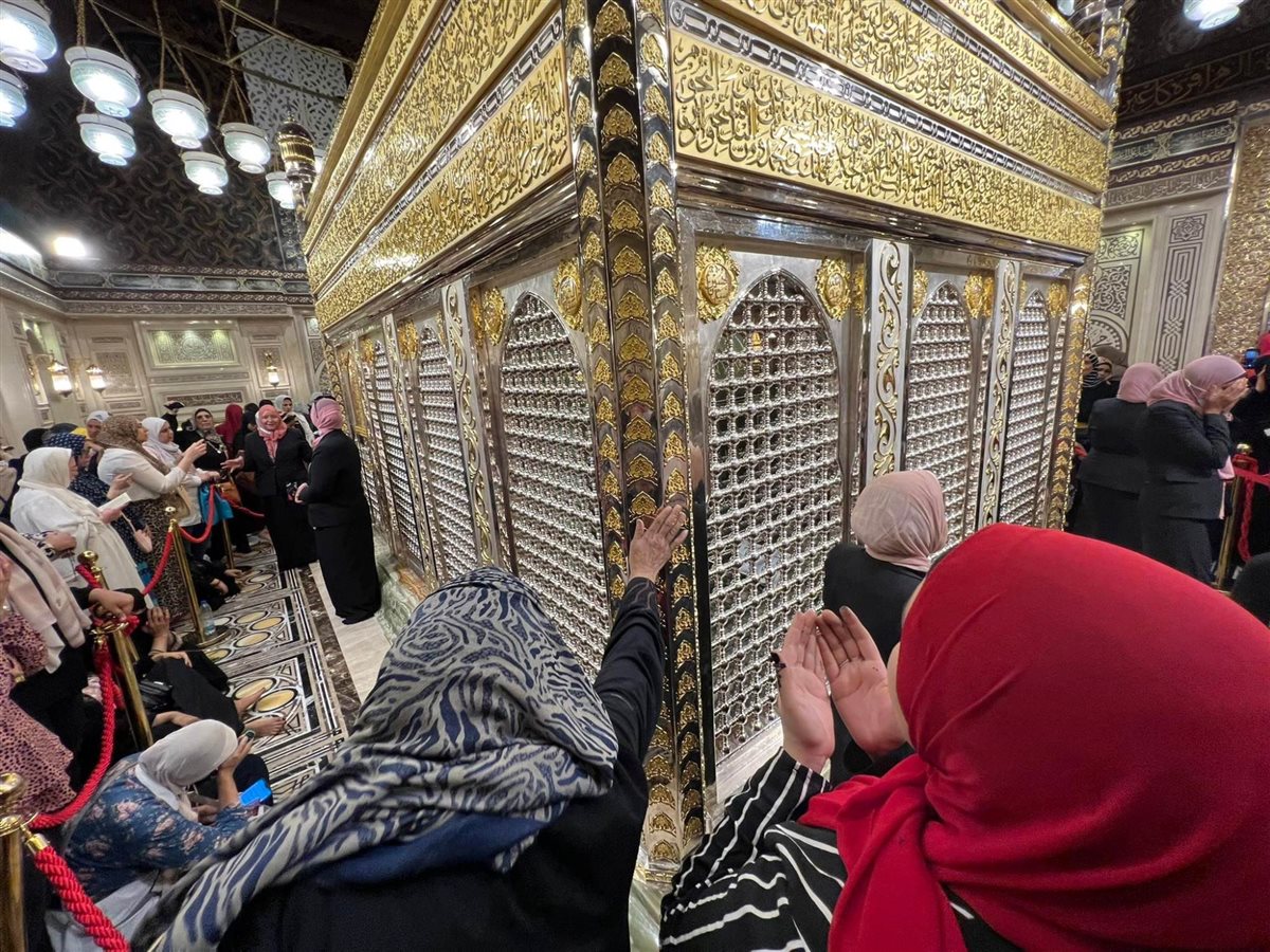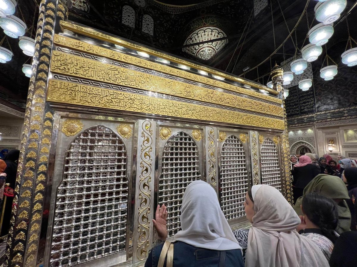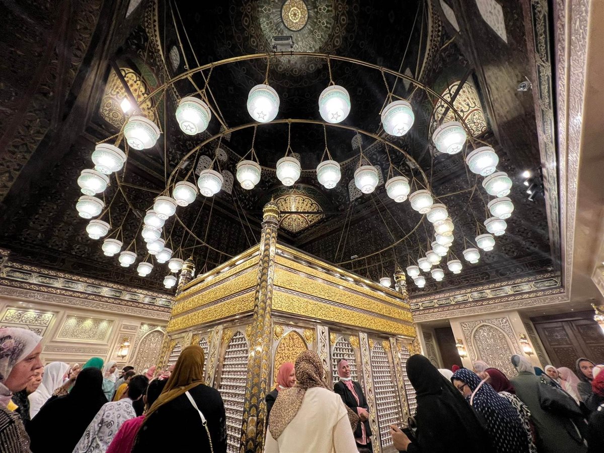 مشهد يحرص كل زوار الضريح على توثيقه من خلال التصوير "بالموبايلات" البسيط منها وغالي الثمن، حتى يعودوا لمنازلهم حاملين ذكرى المكان بصور وڤيديوهات مهما بلغت دقتها لن تُضاهي رؤيتك للمشهد بعينيك المجردة حين ترى نقوش السقف البديعة وامتزاج الألوان بها وحين تنزل عينيك لترى تفاصيل الضريح المزخرف بآياتٍ من القرآن الكريم، وحوله المُحبين من كل مكان.