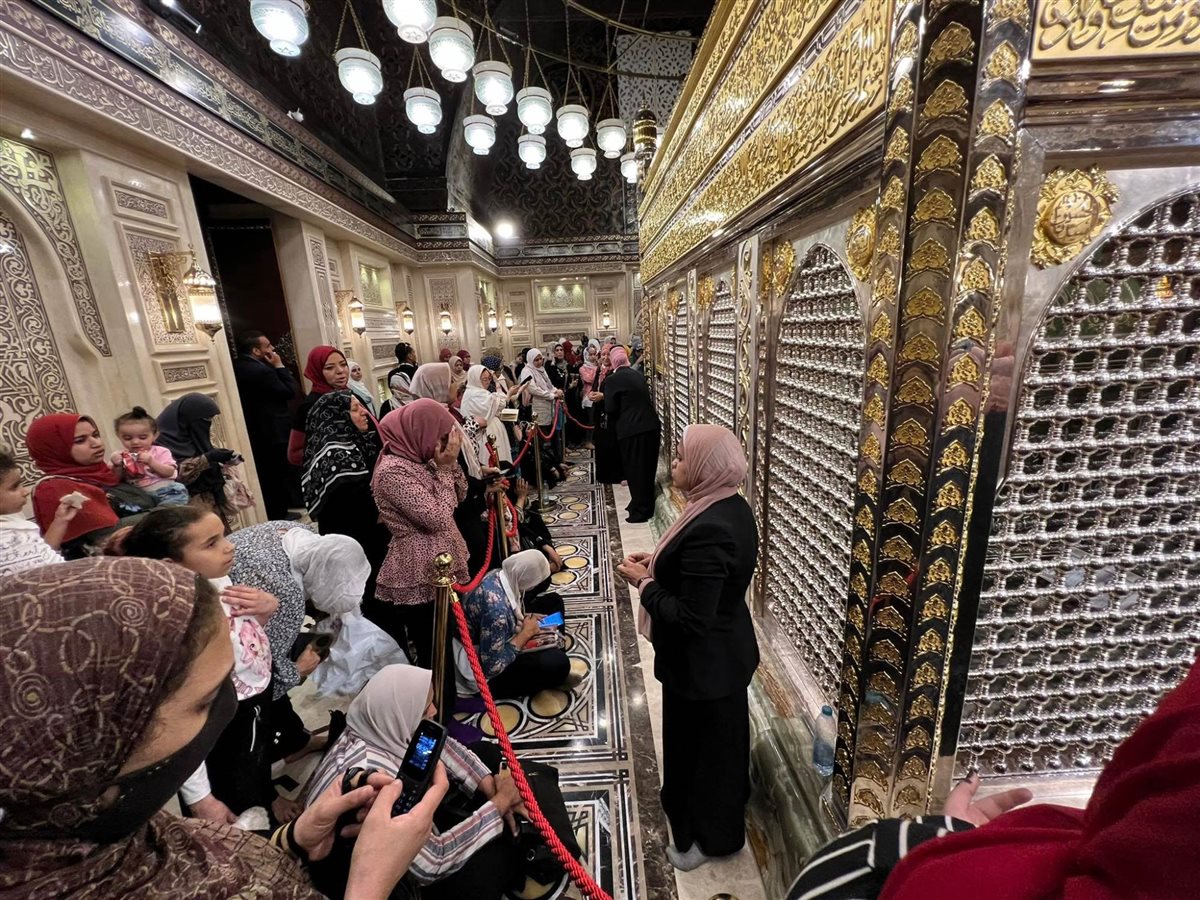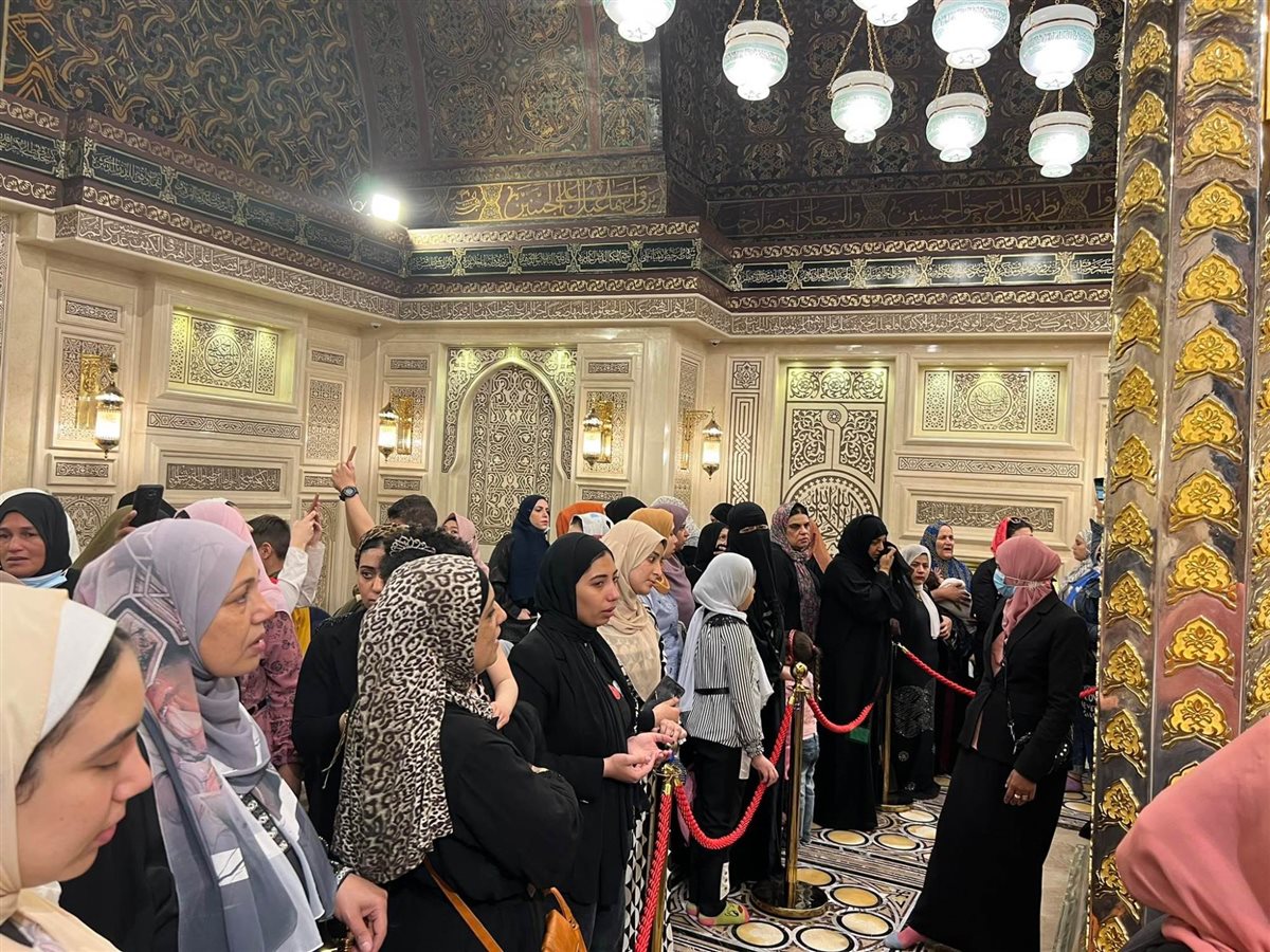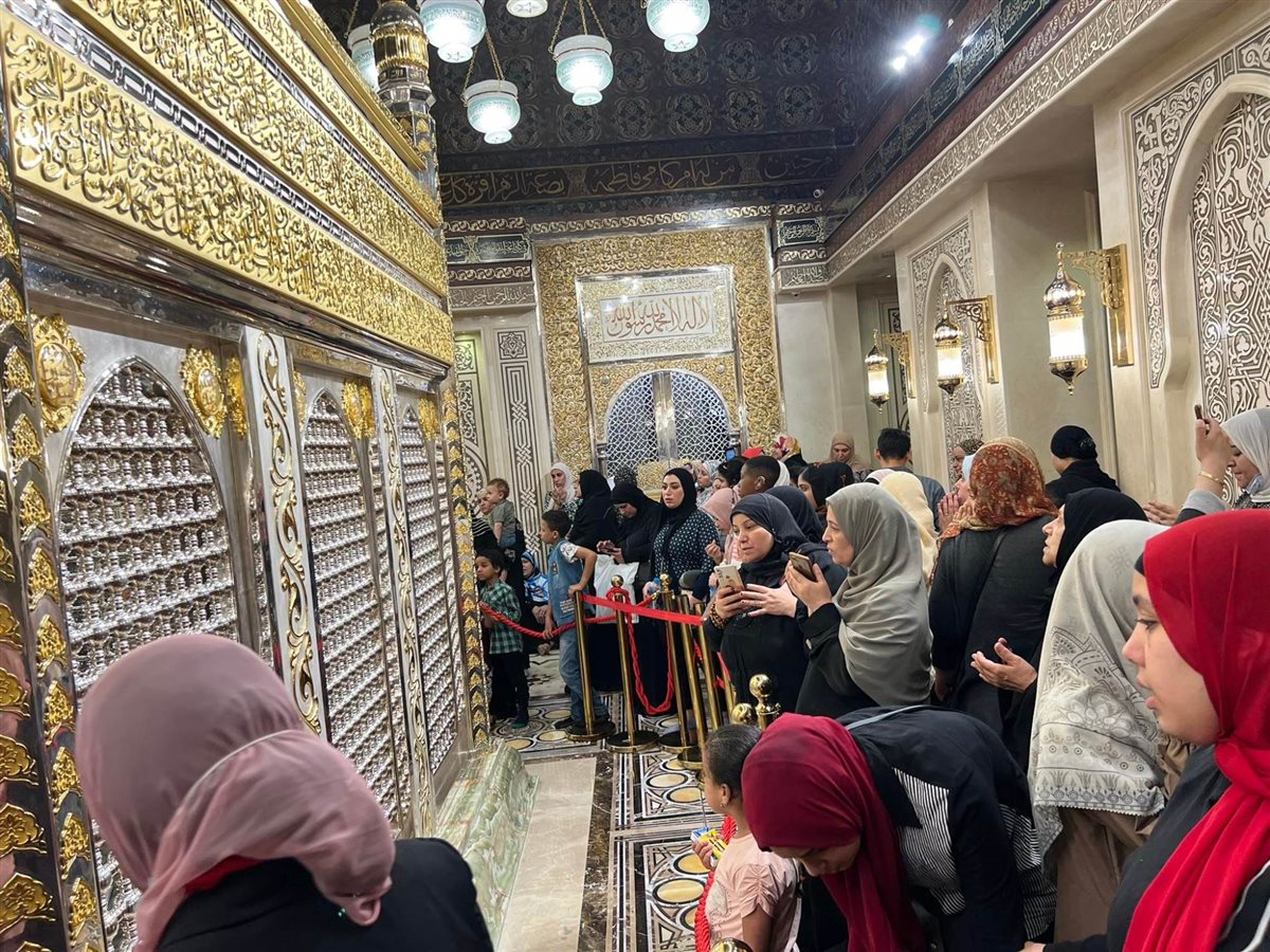 أيادٍ ممدودة بالدعوات والأمنيات وأُناسٌ أتوا من شتى محافظات مصر لزيارة ضريح حفيد النبي مُحمد (صلى الله عليه وسلم)، زحام على زيارته لكن إدارة المسجد لا تسمح بالدخول للجميع دفعةٍ واحدة.. حيث يسمح بالدخول لمجموعة تلو الأخرى لتنظيم العملية.