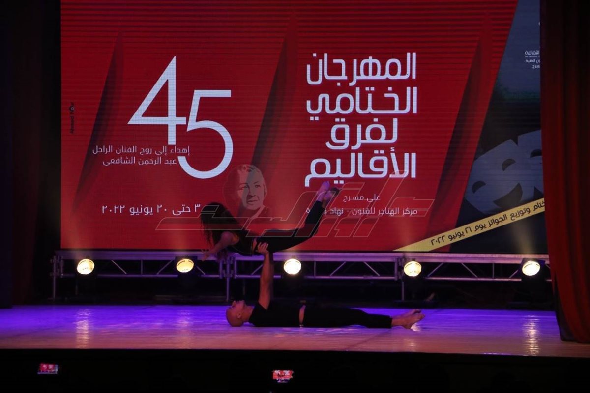 ضمن خطة وزارة الثقافة، وإيمانا من الوزارة برئاسة الدكتورة إيناس عبد الدايم وزيرة الثقافة بدور مسرح الثقافة الجماهيرية، ودوره التنويرى والتوعوى، وكذلك اكتشاف المواهب المسرحية بالأقاليم والعمل على تبنيها واتاحة الفرص للمبدعين الواعدين منهم فى مختلف ألوان فنون المسرح وصقل مهاراتهم الفنية، أقامت الهيئة العامة لقصور الثقافة برئاسة المخرج هشام عطوة حفل ختام المهرجان الختامى لفرق الأقاليم المسرحية فى دورته ال 45 والتي تم إهدائها لروح الفنان الراحل والمخرج الكبير عبد الرحمن الشافعى.