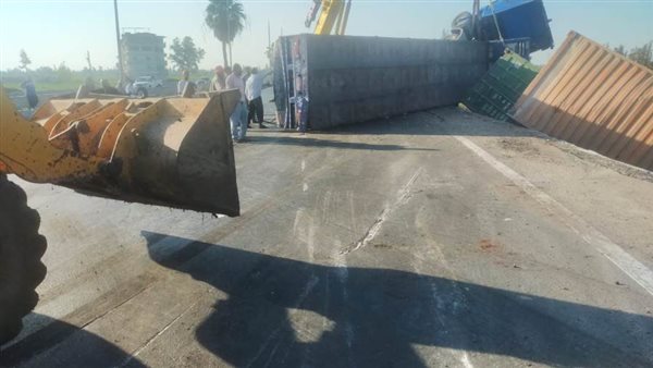 شهد طريق جمصة المنصورة الدولي، بمحافظة الدقهلية، انقلاب سيارة نقل تريلا محملة بالسيراميك، دون وقوع إصابات أو خسائر بشرية.