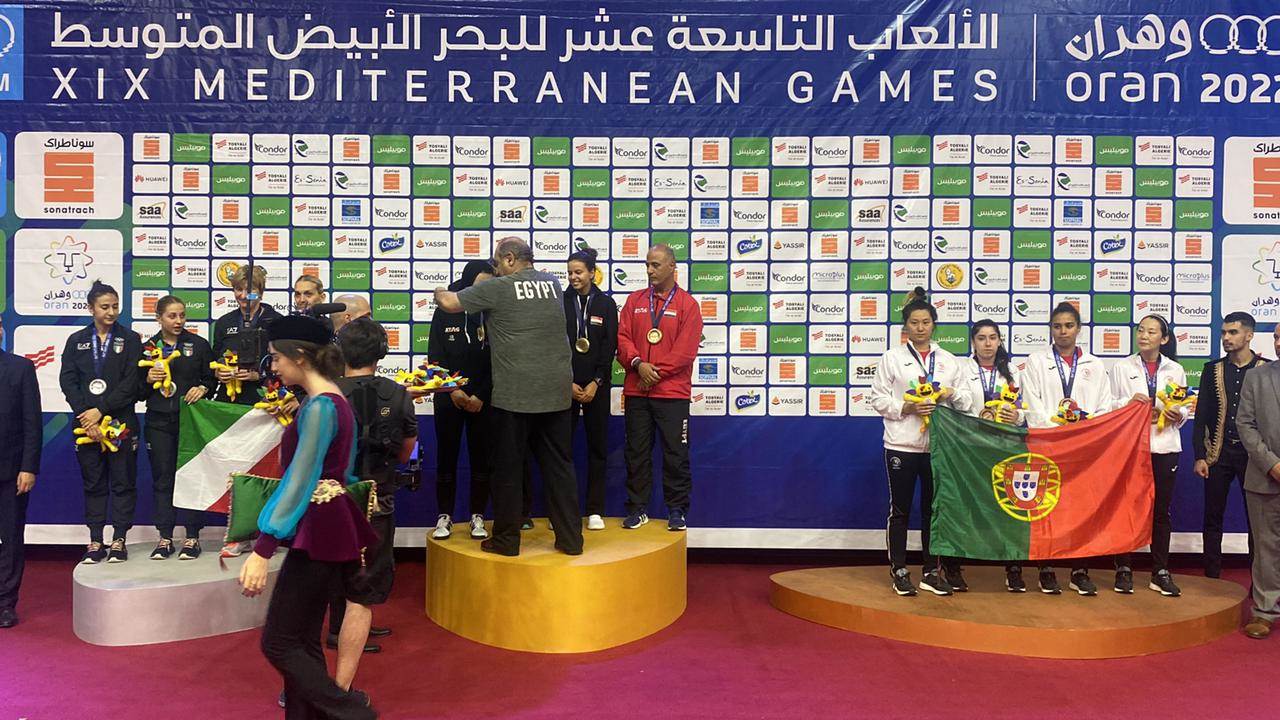 سلّم المهندس هشام حطب رئيس اللجنة الأولمبية ميداليات المركز الأول الذهب لمنتخب مصر لتنس الطاولة للسيدات، في دورة ألعاب البحر المتوسط وهران 2022.