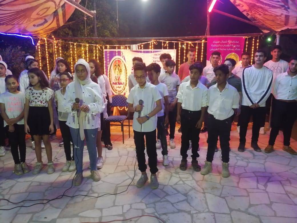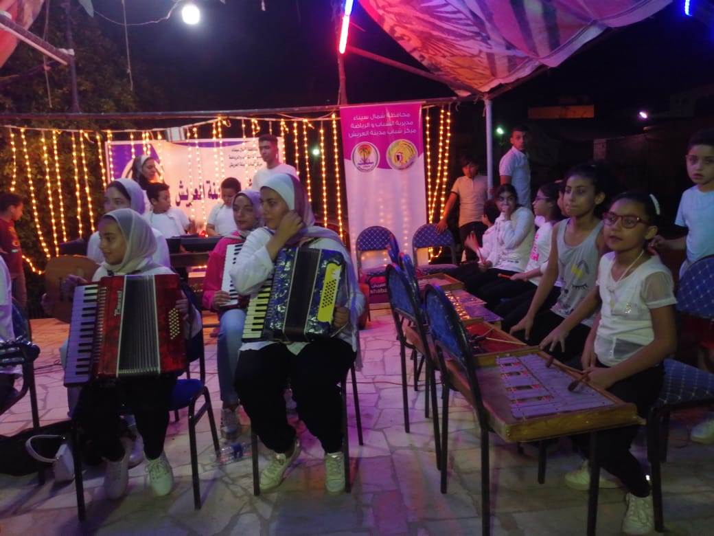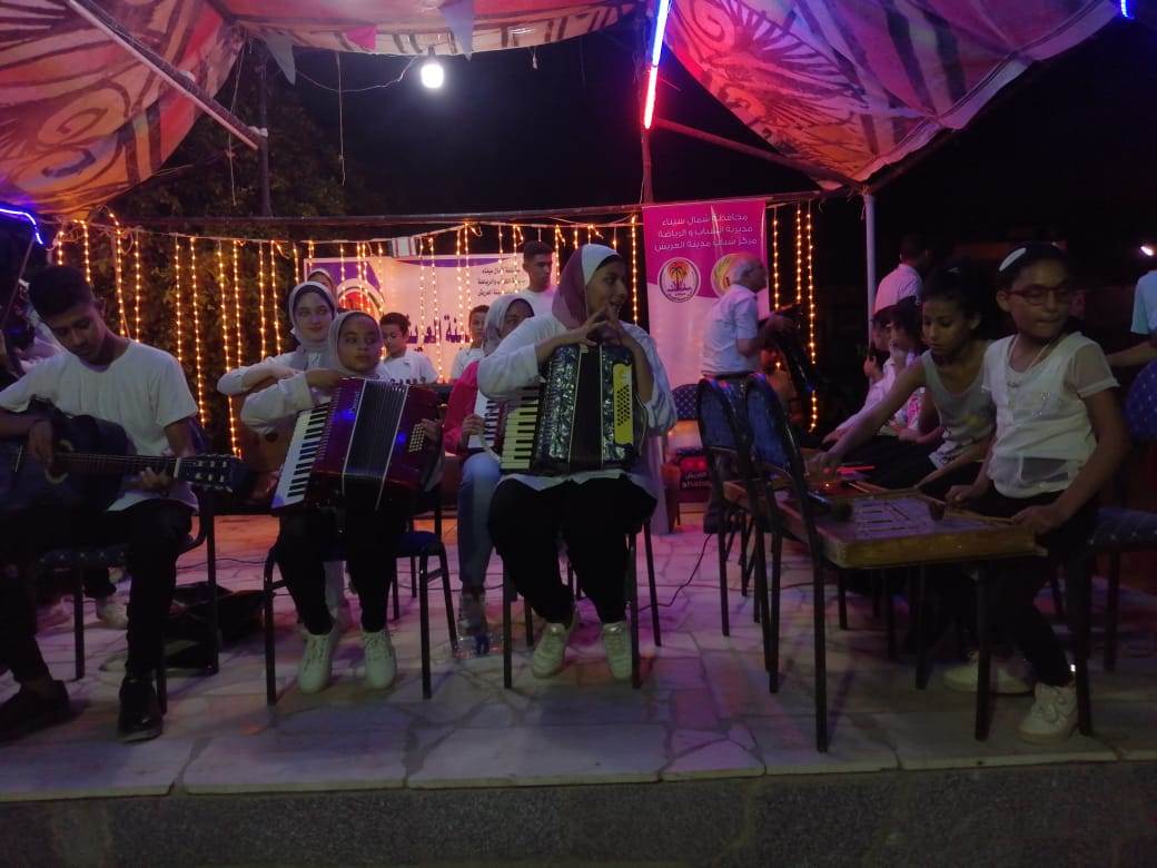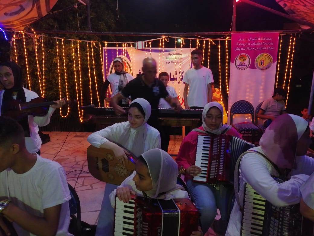 وأكد ناصر العزازى مدير مركز شباب العريش أنه تم تقديم بعض الفقرات الفنية للفرقة الوترية بمركز شباب ضاحية السلام وفريقى الكورال والموسيقى النحاسية بمركز شباب مدينة العريش.