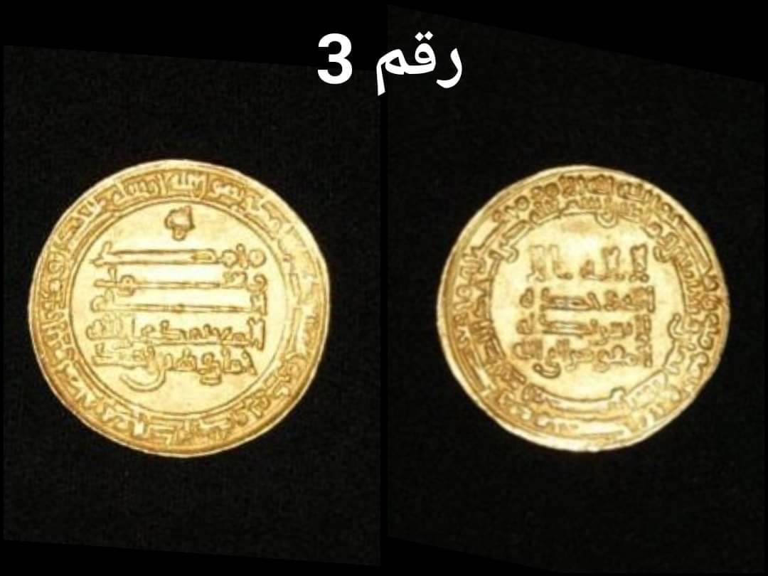 وعرض المتحف القطعة الأولى وهي عبارة عن عملة ذهبية مكتوب علي الوجه: لا اله الا الله وحده لاشريك له محمد رسول الله وعلي الظهر: محمد/رسول الله/محمد وترجع للعصر العباسي والقطعة الثانية مكتوب على الوجه: لا اله الا الله محمد رسول الله وعلى الظهر الدينر المنقوط الخليفة العزيز بالله وترجع للعصر الفاطمي القطعة الثالثه مكتوب على الوجه: الله/محمد/رسول/الله/المعتمد علي الله/خماروية بن أحمد وعلي الظهر: لا اله الا/الله وحده/لا شريك له/المفوض إلي الله وترجع للعصر الطولوني.