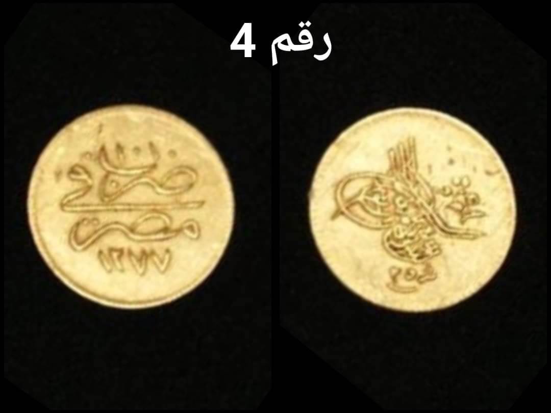 والقطعة الرابعة رسم لطغراء باسم السلطان عبدالعزيز عز نصره وعلي الظهر: ضرب بمصر 1277 وترجع للعصر العثماني.