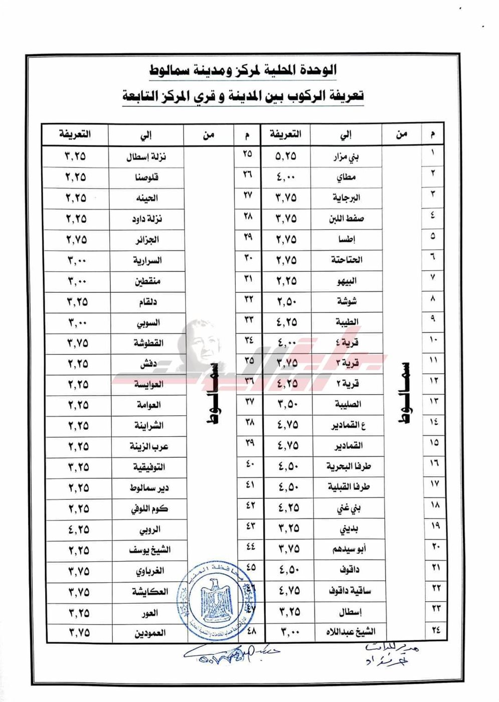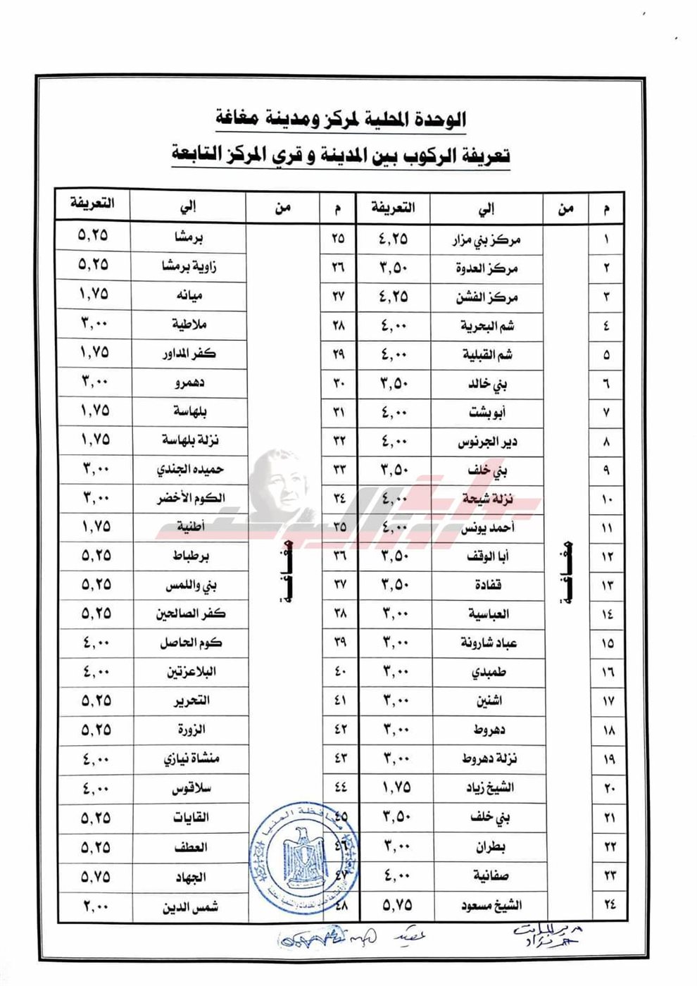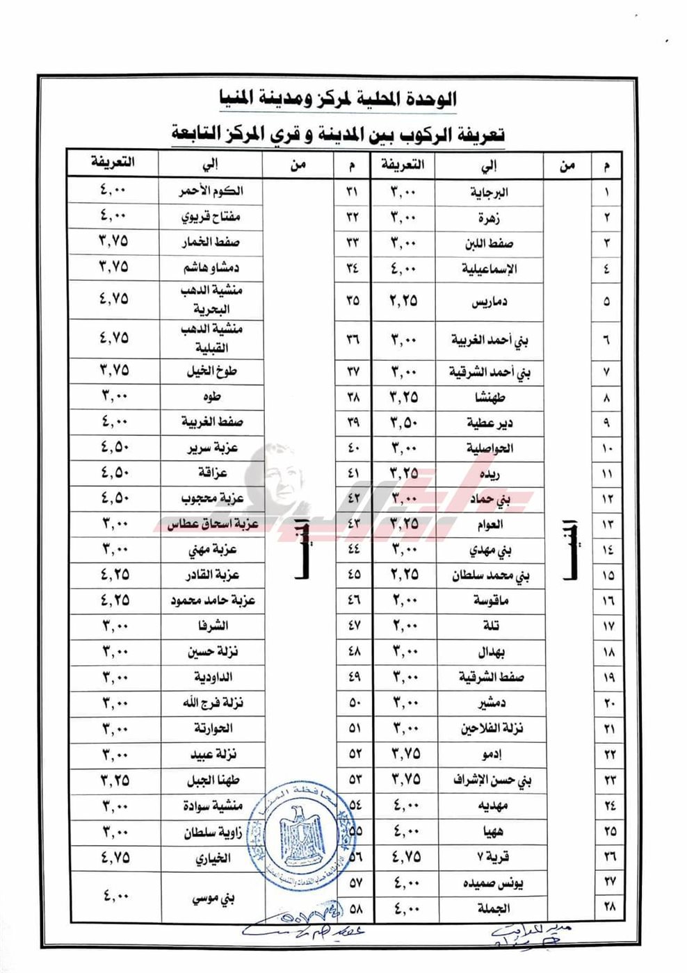 ننشر تعريفة المواصلات الجديدة بالمنيا.. صور