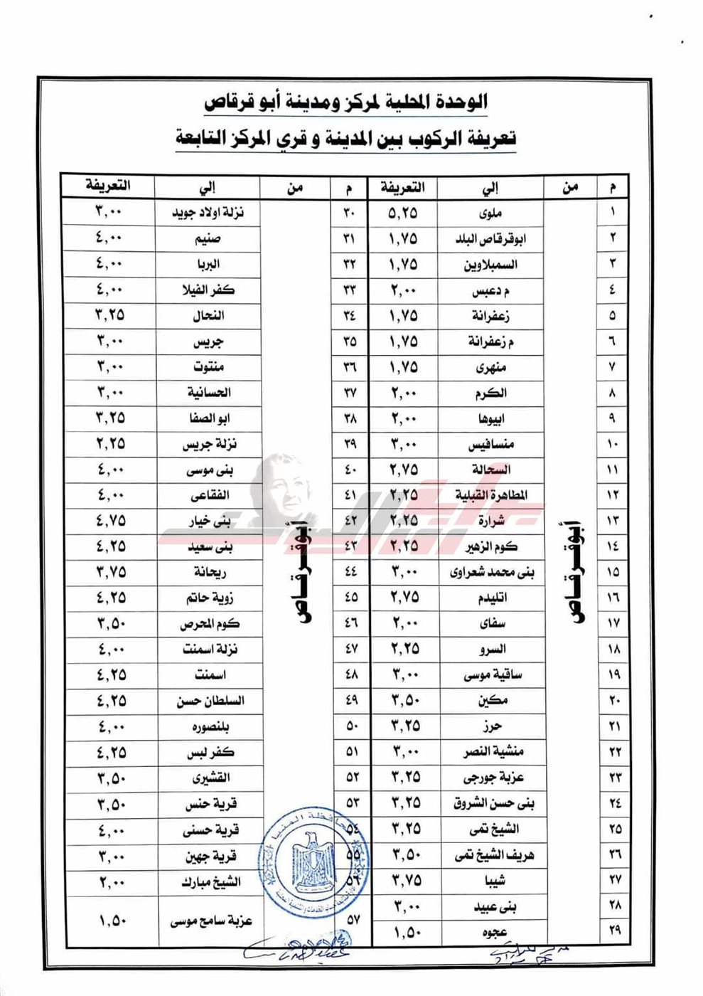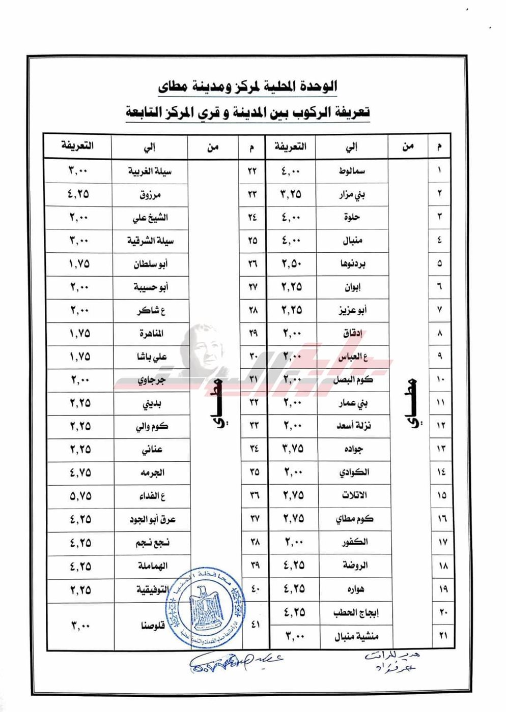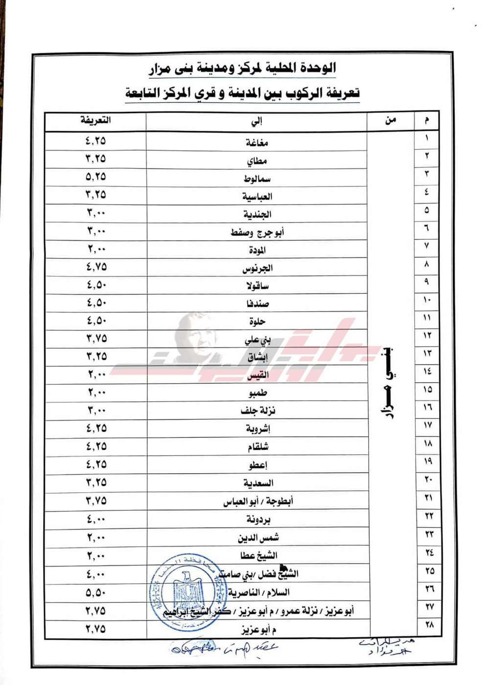 ننشر تعريفة المواصلات الجديدة بالمنيا.. صور