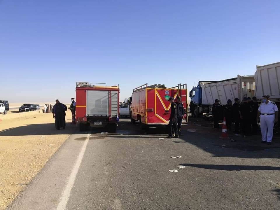 مصرع 22 وإصابة 33 في تصادم على الطريق الصحراوي الشرقي بالمنيا (صور)