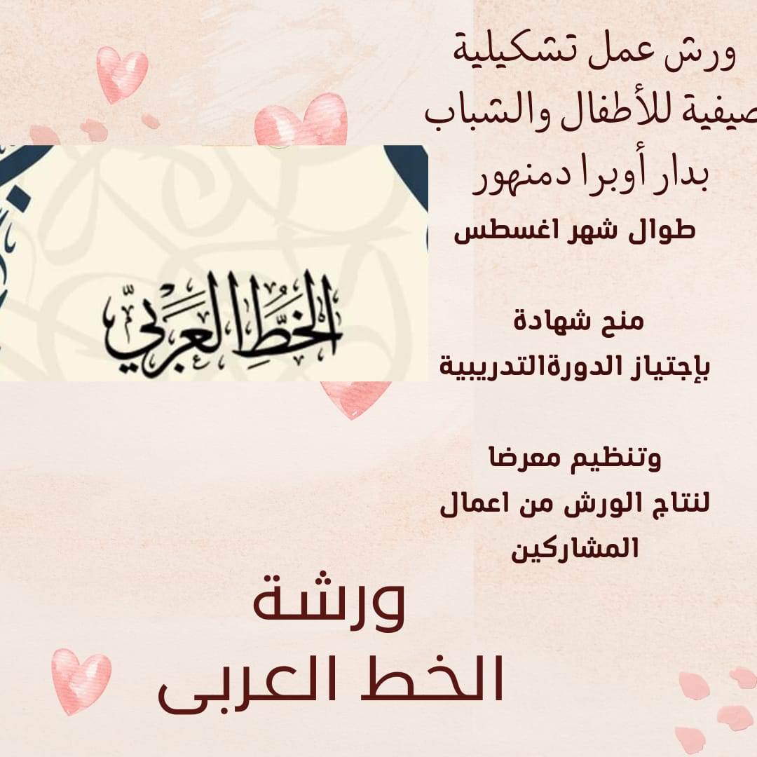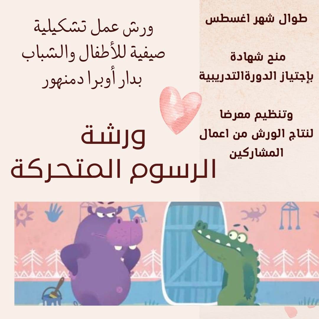 تقام الورش التشكيلة للأطفال والشباب بداية من سن 7 سنوات، تعقد في مجالات الرسوم المتحركة، نحت الماسكات المسرحية، مشغولات الطباعة اليدوية، الخط العربى، المشغولات الجلدية والحرق، بداية من شهر أغسطس بدار أوبرا دمنهور أيام الأحد ، الاثنين والثلاثاء من كل أسبوع من العاشرة والنصف صباحاً وحتى الواحدة ظهراً ، كما تقرر منح شهادة بإجتياز الدورة التدريبية وتنظيم معرضاً لنتاج الورش من أعمال المشاركين بعد إنتهاء الورش.
