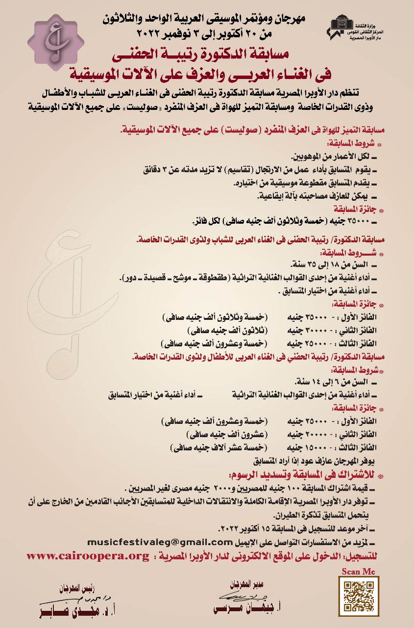مسابقة رتيبة الحفني في الغناء للشباب والأطفال وذوى القدرات الخاصة والتميز للهواة في العزف المنفرد على جميع الآلات الموسيقية
