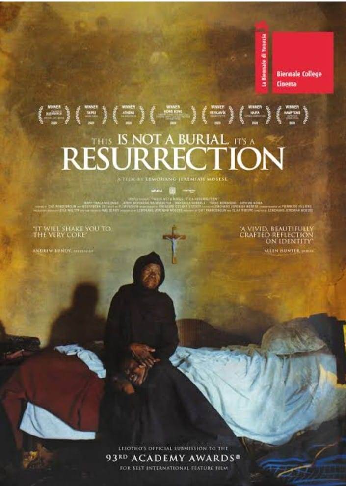 فيلم “هذه ليست جنازة .. هذه قيامة” حصل من قبل علي عدة جوائز كأفضل فيلم وأفضل مخرج من عدة مهرجانات منها “فينيسا وصاندانس”، كما رشح للأوسكار كافضل فيلم اجنبي، والفيلم يتناول حياة ارملة تعيش في جبال ليسوتو، وقد بلغت من العمر 80 عاما و تدعي "ماناتو"، حيث تنتظر عودة ابنها من مناجم جنوب إفريقيا ولكنها تخبر بوفاته فتتوق لوفاتها بعد فقدان آخر أفراد عائلتها المتبقين، وتستعد ماناتوا للنهاية بترتيب جنازتها وتوديع حياتها الدنيوية وتتخذ الترتيبات لدفنها في المقبرة المحلية لتتعثر خططها بشكل مفاجئ، حيث تعلم أن الحكومة تعتزم إعادة توطين سكان القرية وإغراق المنطقة بأكملها وبناء سد خزان، فتسخر ماناتو نفسها للدفاع عن التراث الروحي للمجتمع.