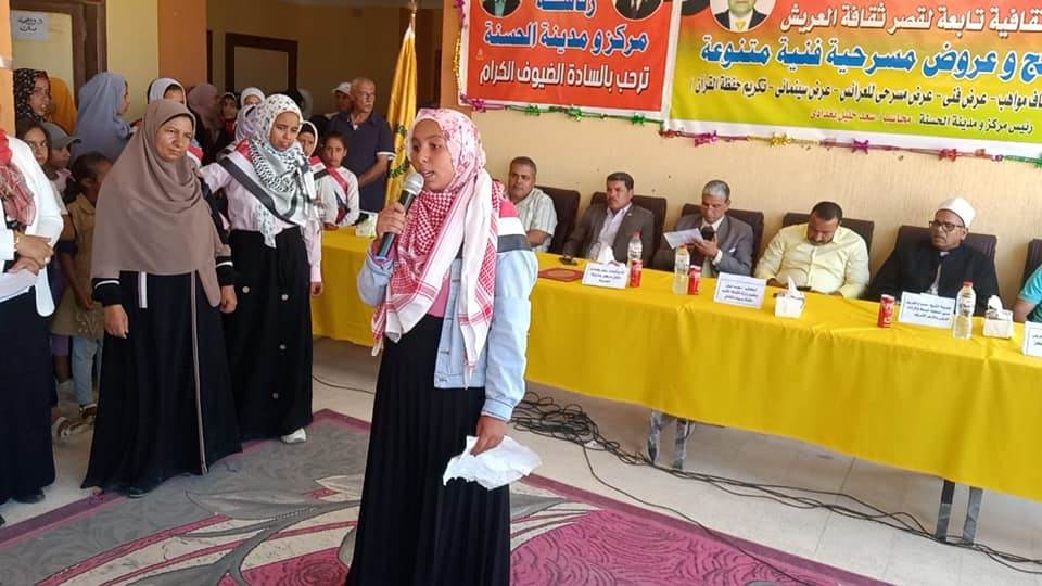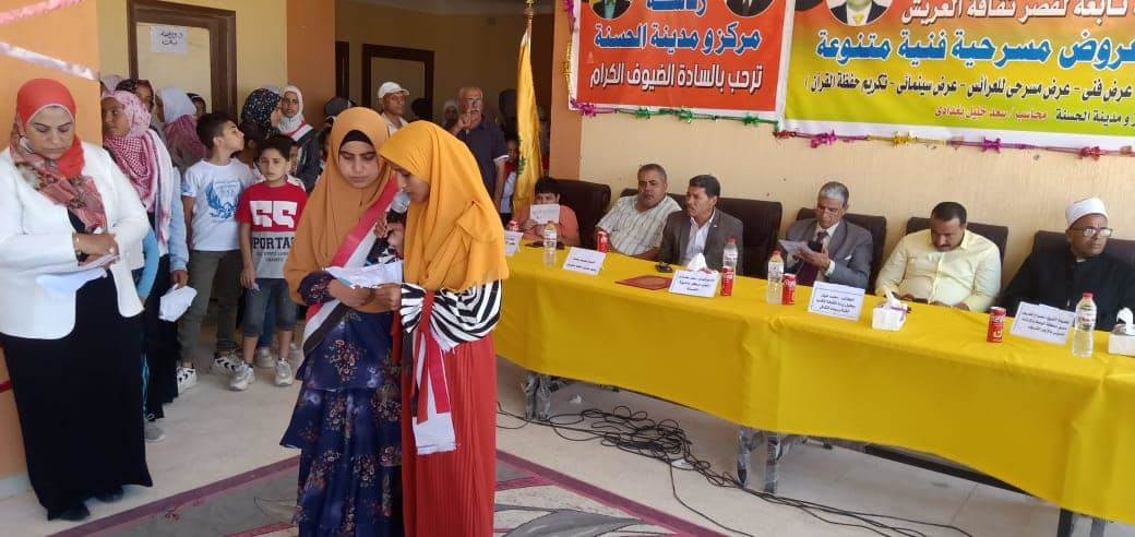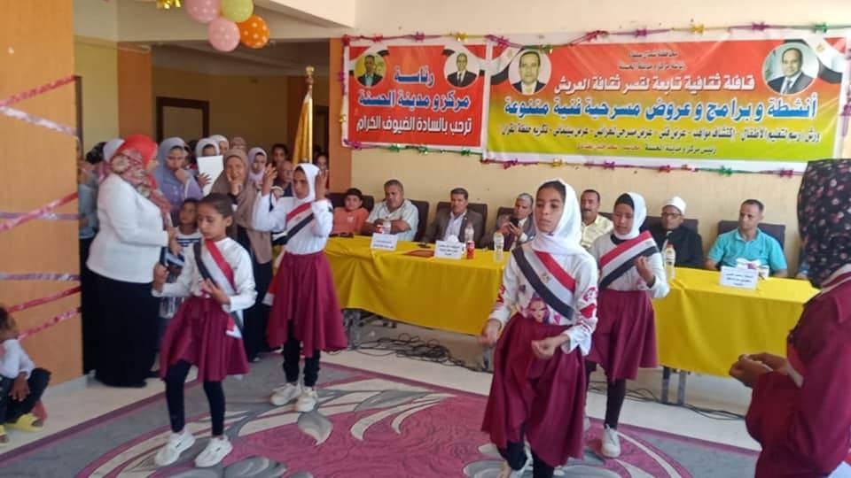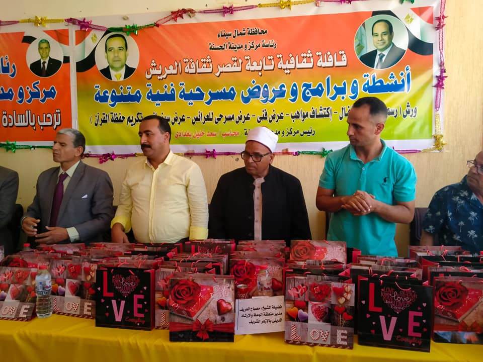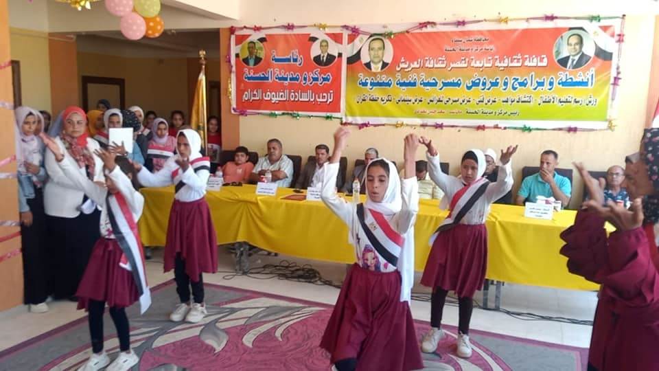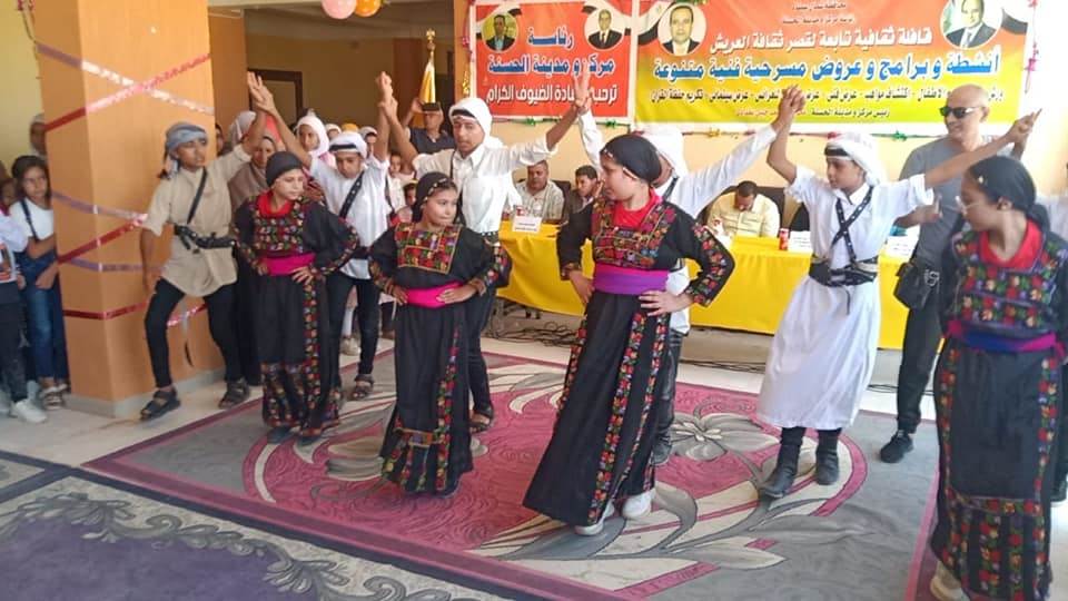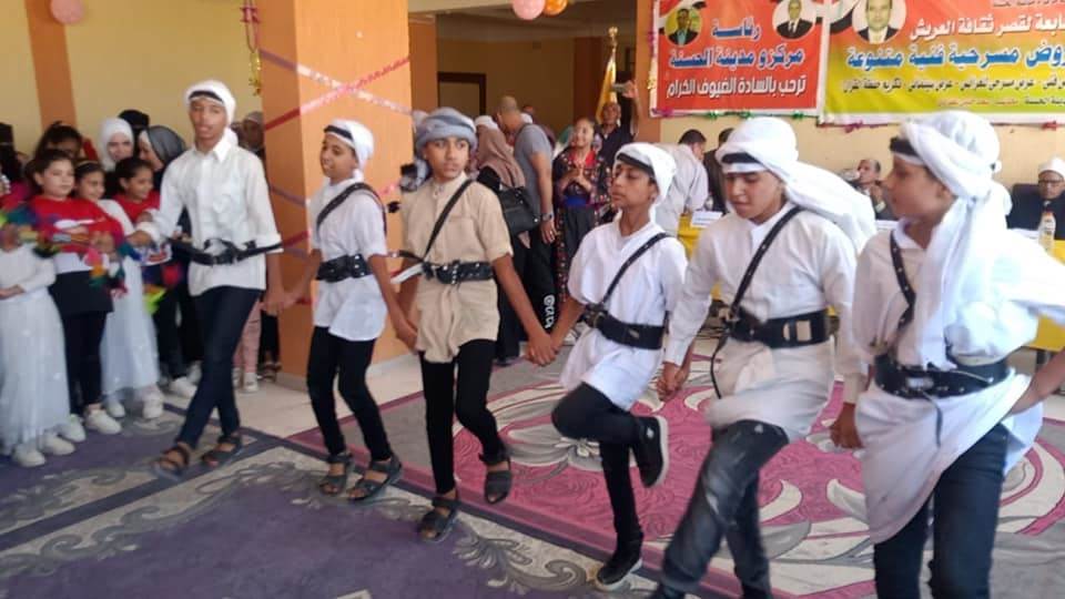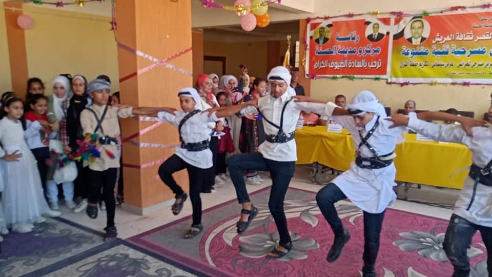 وقدم فرع ثقافة شمال سيناء عرضًا لفرقة مواهب العريش وعرضًا آخر للفرقة الاستعراضية للأطفال، وتم تقديم عرض فني توعوي لفقرة الأرجوز.. كما تقدمت فتيات الحسنة بالشعر والالقاء والغناء والانشاد، وقدمت فرقة مواهب الحسنة فقرة استعراضية بالأغانى الوطنية حبا فى سيناء وتقديرا للشهيد وغناء جماعى احتفالا بالعام الهجرى الجديد .