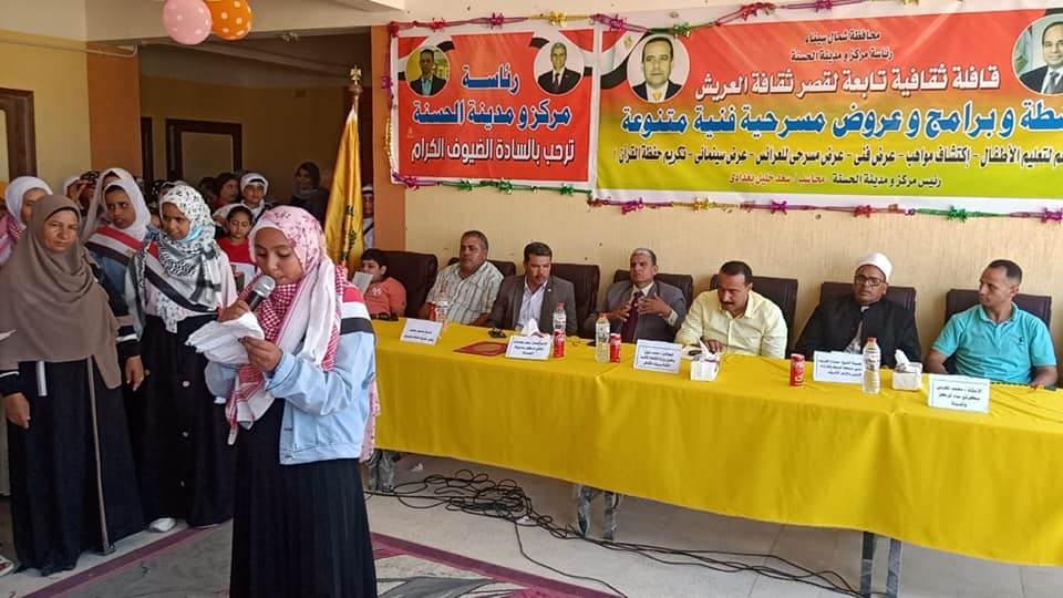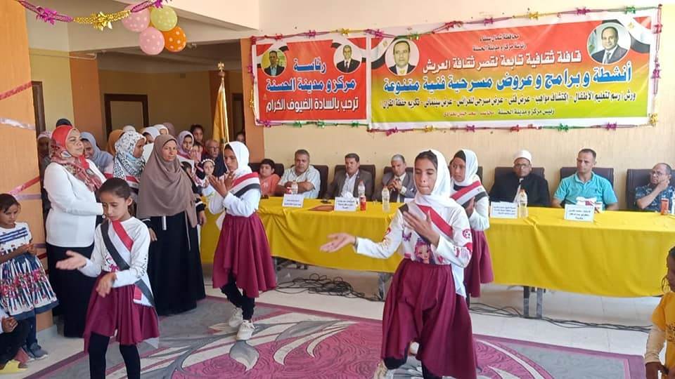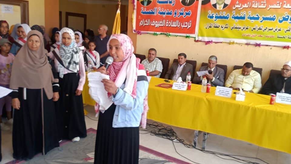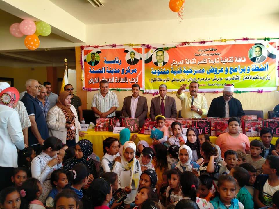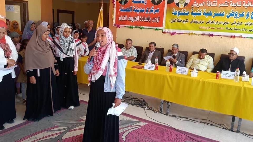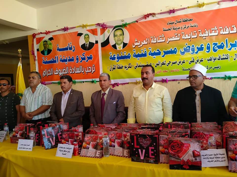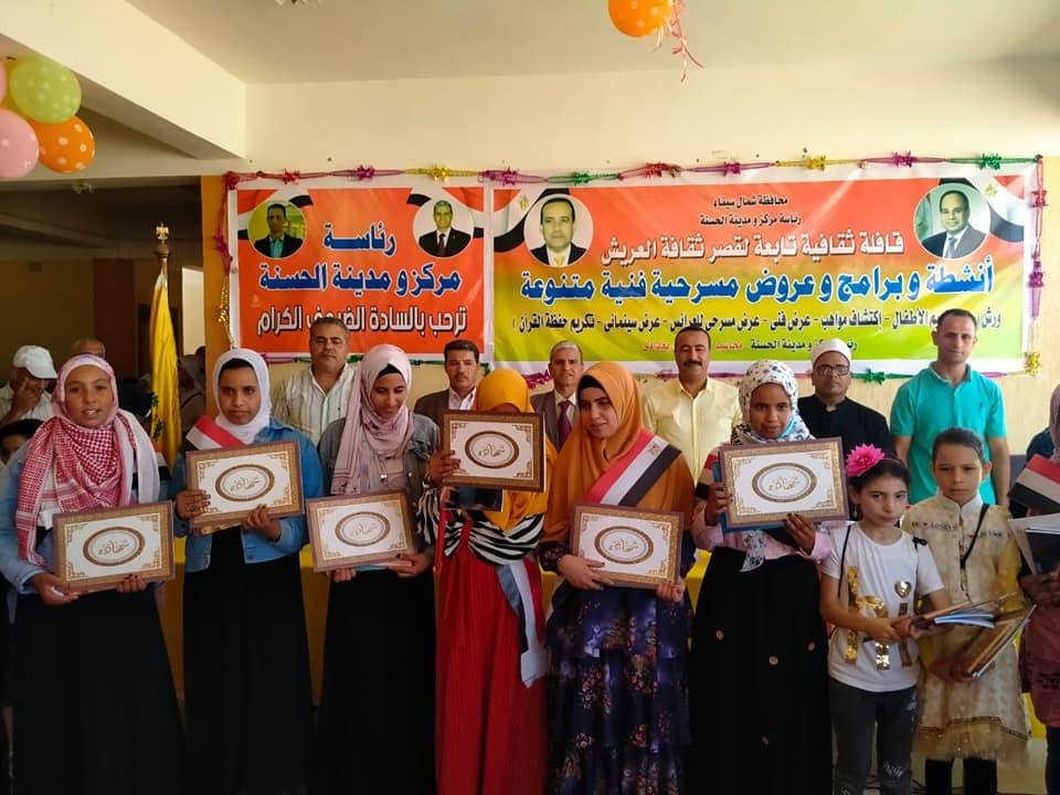 وقدم فرع ثقافة شمال سيناء عرضًا لفرقة مواهب العريش وعرضًا آخر للفرقة الاستعراضية للأطفال، وتم تقديم عرض فني توعوي لفقرة الأرجوز.. كما تقدمت فتيات الحسنة بالشعر والالقاء والغناء والانشاد، وقدمت فرقة مواهب الحسنة فقرة استعراضية بالأغانى الوطنية حبا فى سيناء وتقديرا للشهيد وغناء جماعى احتفالا بالعام الهجرى الجديد .