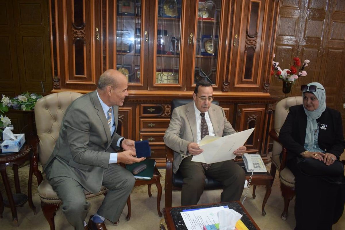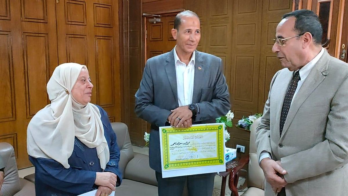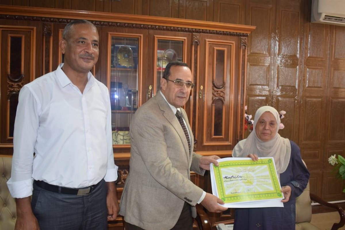 التقى الدكتور محمد عبد الفضيل شوشة في مكتبه اليوم بالأم المثالية الأولى حياة ابراهيم مغنم، حيث تم تسليمها هدية الرئيس بمنحها نوط الكمال من الدرجة الثانية الذي منحه لها رئيس الجمهورية، إلى جانب منحها شيكا وشهادة تقدير من المحافظة.