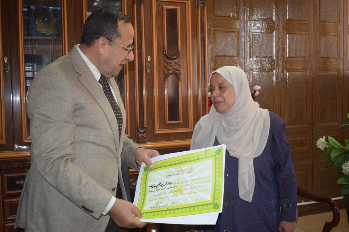 كما كرم المحافظ كلا من: محمود نجيب الموظف السابق بقسم الأجازات الخاصة بمديرية التربية والتعليم، ومنال محمد ابراهيم الموظفة السابقة في قسم الحسابات بديوان عام المحافظة، حيث تم منحهما شهادتي تقدير، وذلك بمناسبة احالتهما الى المعاش.. متمنيا لهما كل توفيق في حياتهما.