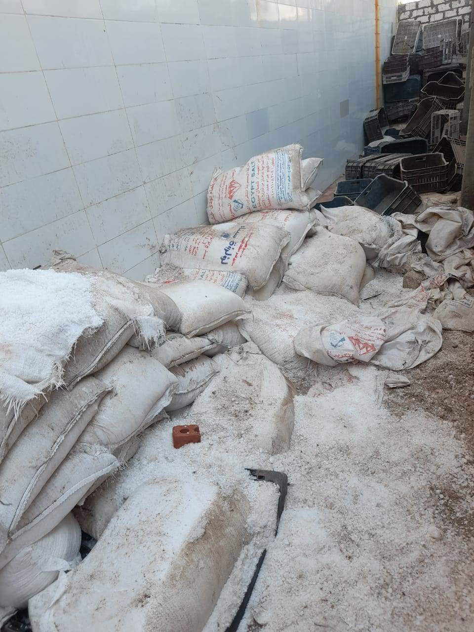 أسفرت الحملة عن ضبط ٥٠ شيكارة ملح طعام غير محتفظ بخواصه الطبيعية ومخزن تحت أشعة الشمس المباشرة والشكائر ممزقة ومختلطة بالأتربة بإجمالى وزن ٢٥٠٠ كيلوجرام.