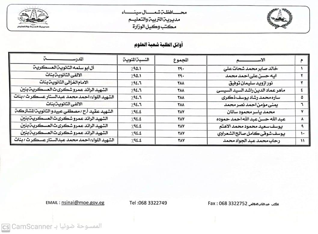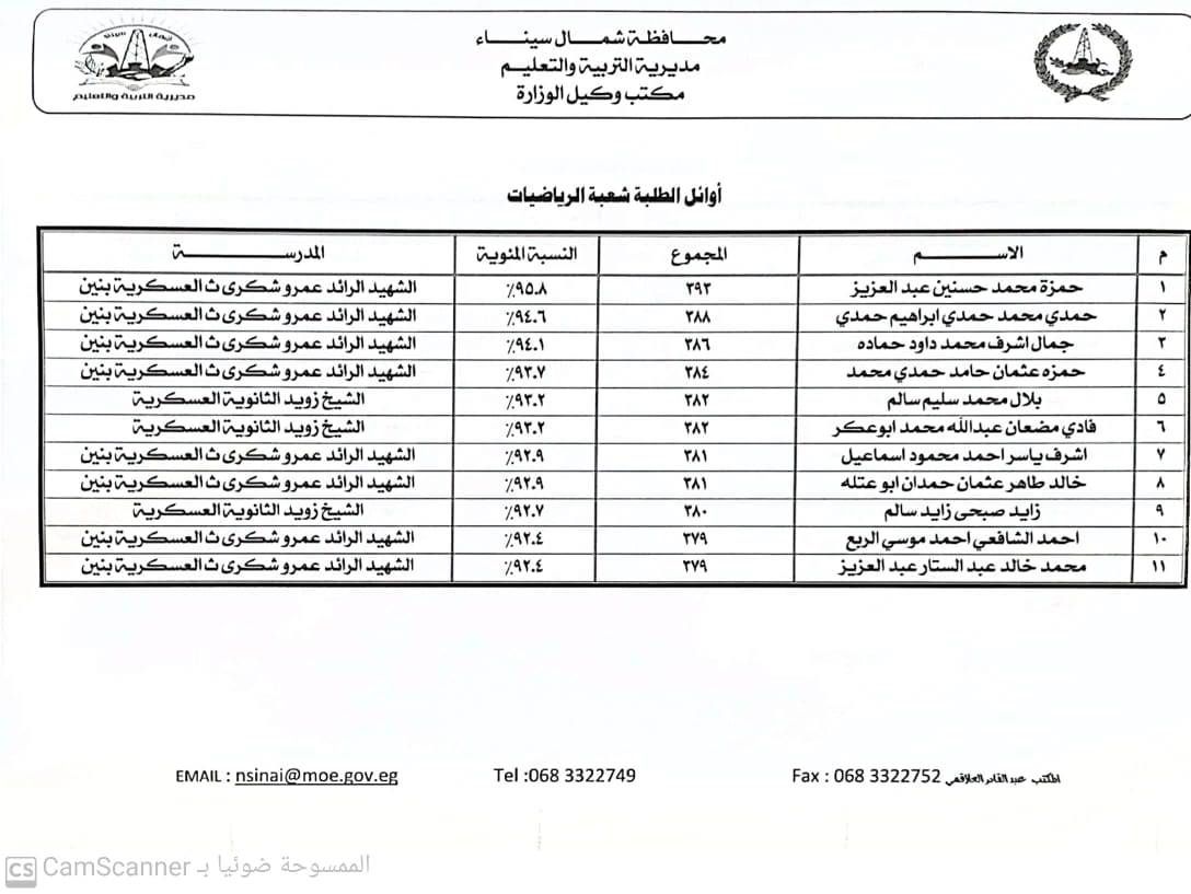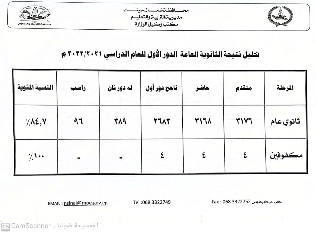84.7% نسبة النجاح في الثانوية العامة بشمال سيناء