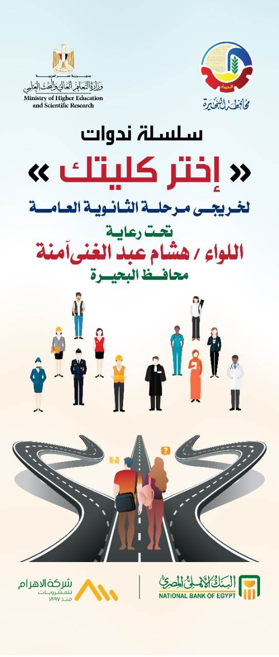 وتحت رعاية اللواء هشام أمنة محافظ البحيرة والدكتورة نهال بلبع نائب المحافظ، تنظم محافظة البحيرة سلسلة ندوات تحت عنوان "اختر كليتك" في الفترة مبدئيا من 10-15 أغسطس 2022 وذلك لإلقاء الضوء على طبيعة الكليات المختلفة وأقسامها المتوفرة ومـا تؤهل إليه من مجالات مختلفة.