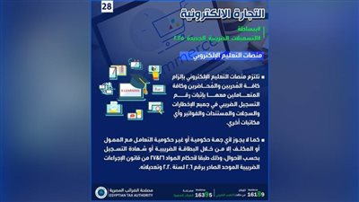 "الضرائب" تصدر إنفوجرافا بشأن منصات التعليم الإلكتروني