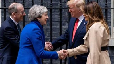 "ترامب وماي" تفاديا المصافحة في "10 داونينج ستريت" (صور)