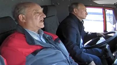 "بوتين" يقود شاحنة خلال افتتاح "جسر القرم" (فيديو)