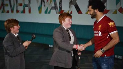 "صلاح" يفاجئ 20 طفلًا بمسابقة التعليق الرياضي في مدرسة بـ"ليفربول"