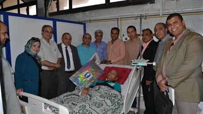 الفولي في زيارة للجنة الطالب الذى فقد أسرته بحادث مأساوى بمستشفى السويس العام