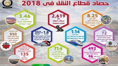 "الوزراء" يرصد حصاد قطاع النقل في 2018.. إنفوجراف
