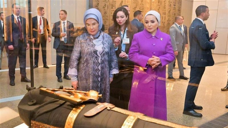 السيدة انتصار السيسي ترافق قرينة الرئيس التركي داخل أروقة المتحف المصري الكبير