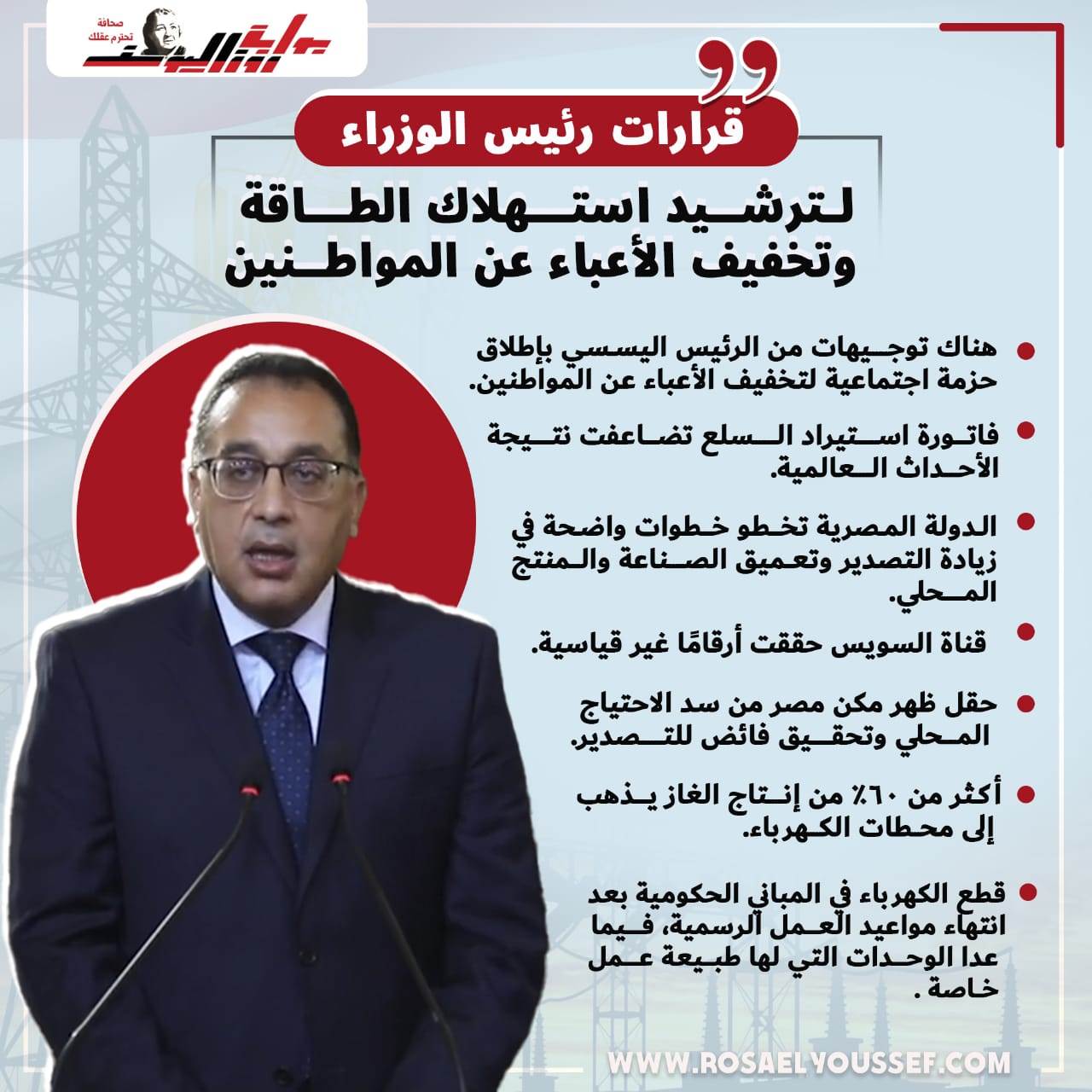 قرارات رئيس الوزراء لترشيد استهلاك الطاقة وتخفيف الأعباء على المواطنين