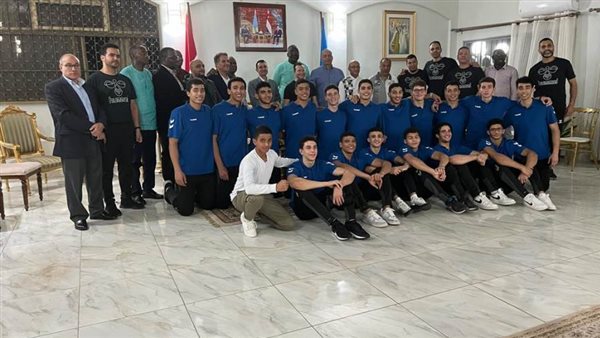 كان في استقبال البعثة محمد سمير القائم بأعمال السفارة بالإنابة، وبحضور مسؤولي السفارة، ومنصورو أريمو رئيس الاتحاد الإفريقي، وأجوستي نائب رئيس الاتحاد الإفريقي، ويزيد السعادي رئيس لجنة المسابقات بالاتحاد الإفريقي لكرة اليد، وعاصم السعدني عضو مجلس إدارة الاتحاد المصري لكرة اليد ورئيس بعثة المنتخب، وأيمن صلاح المشرف على المنتخبات الوطنية لكرة اليد، والجهاز الفني ولاعبي منتخب الناشئين.