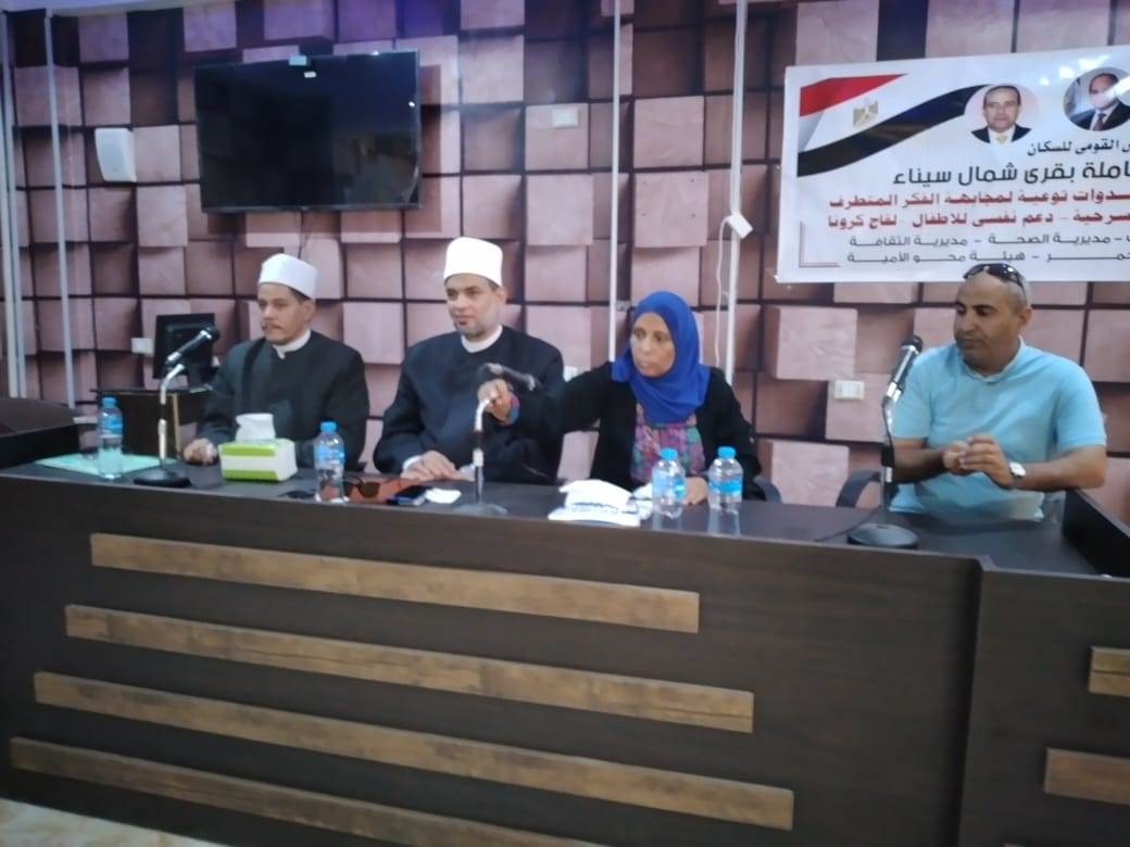 وأشارت سالم الى أن القافلة السكانية بمشاركة الأزهر الشريف، مديريتى: الصحة والثقافة، الهلال الأحمر المصري بشمال سيناء، وهيئة محو الأمية وتعليم الكبار .