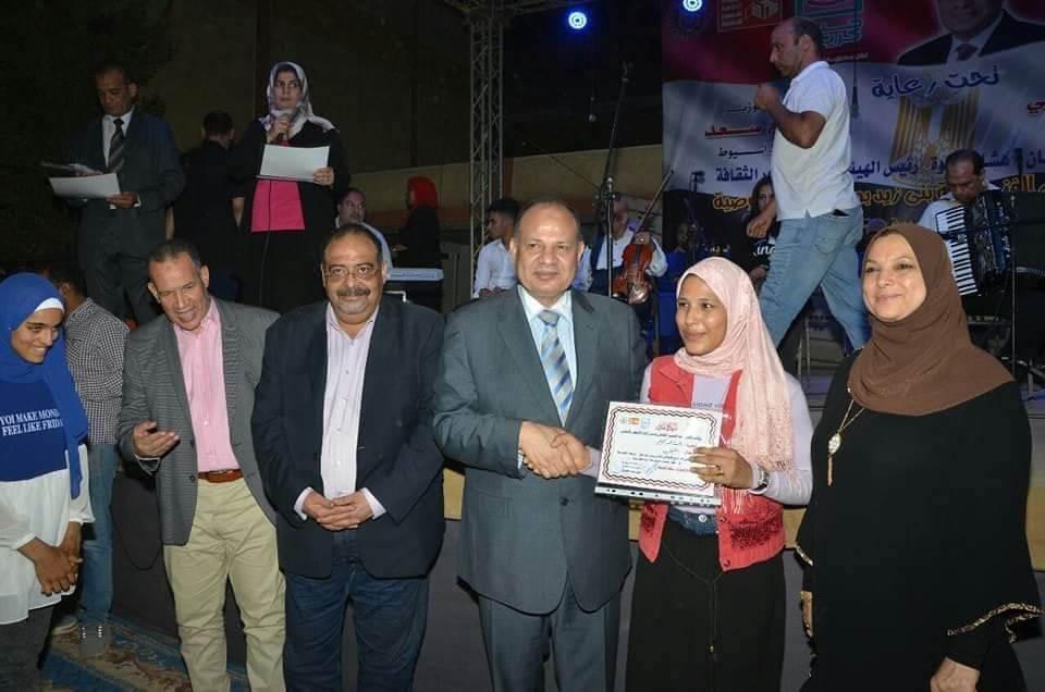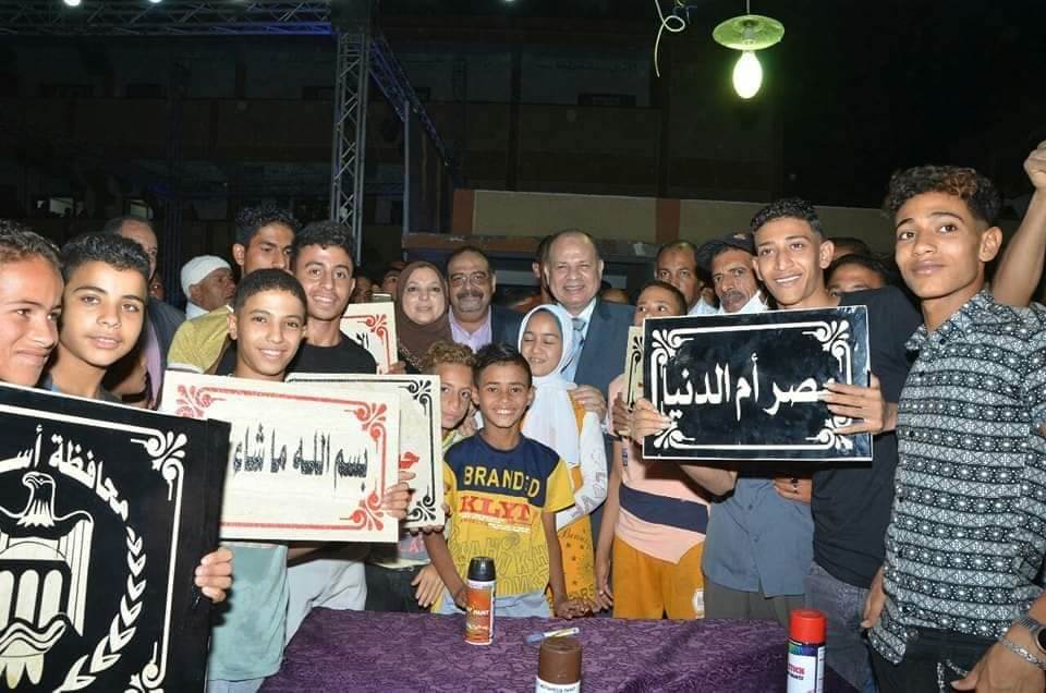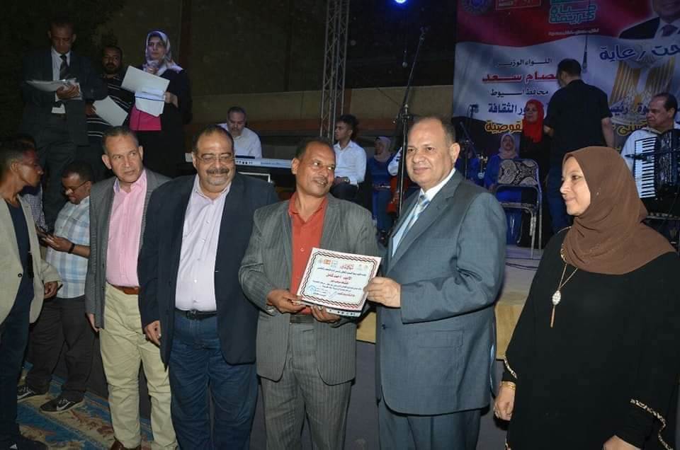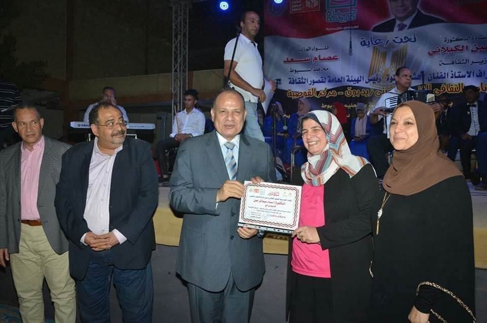 كما قام اللواء عصام سعد محافظ أسيوط بتكريم المواهب الشابه من أبناء القرية فى جميع المجالات والمتميزين فى الورش الفنية المقدمة