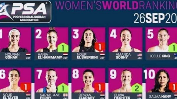 في حين شهد باقي التصنيف تواجد نور الشربيني في المركز الثالث ونور الطيب في المركز السادس وروان العربي في المركز الثامن وسلمى هاني في المركز العاشر. وبذلك يضم تصنيف العشرة الأوائل 6 لاعبات مصريات ويواصل بطلات الإسكواش المصرية سيطرتهن على العرش العالمي.