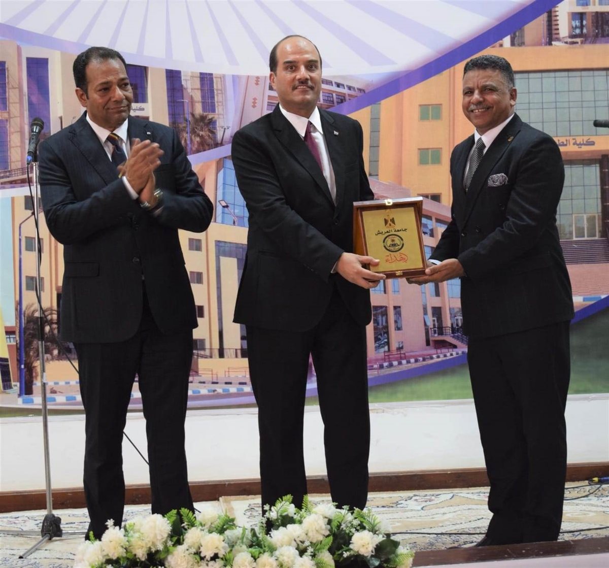 ونقل تحيات الدكتور أيمن عاشور وزير التعليم العالى الى الجامعة والطلاب وأهالى سيناء بمناسبة هذا اليوم العظيم .