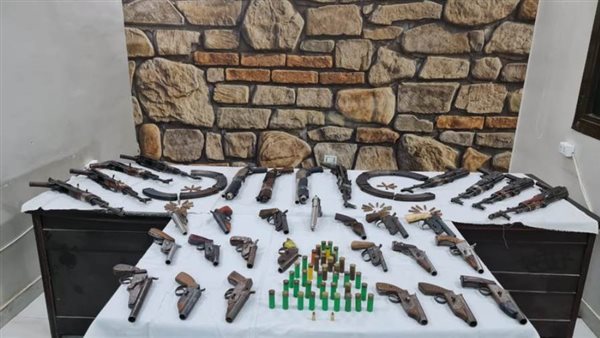 ضبط “32” قطعة سلاح ناري.. عبارة عن “9 بنادق آلية- 3 بنادق خرطوش- طبنجة - 19 فرد محلي - عدد من الطلقات النارية بحوزة 23 متهمًا "من بينهم 7 لهم معلومات جنائية".