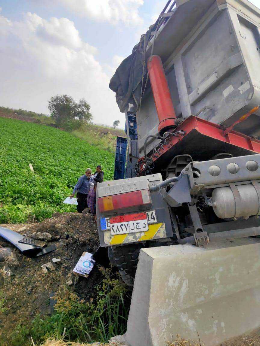 أصيب سائق شاحنة نقل، جراء اختراقها الحاجز الخرساني على طريق رافد جمصة، بمحافظة الدقهلية، وسقوطها داخل أرض زراعية.