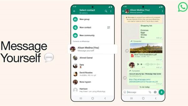 وأوضحت منصة المراسلات الفورية الشهيرة في منشور لها اليوم أن الميزة تسمى "Message Yourself" تتيح إرسال الرسائل إلى نفسك.