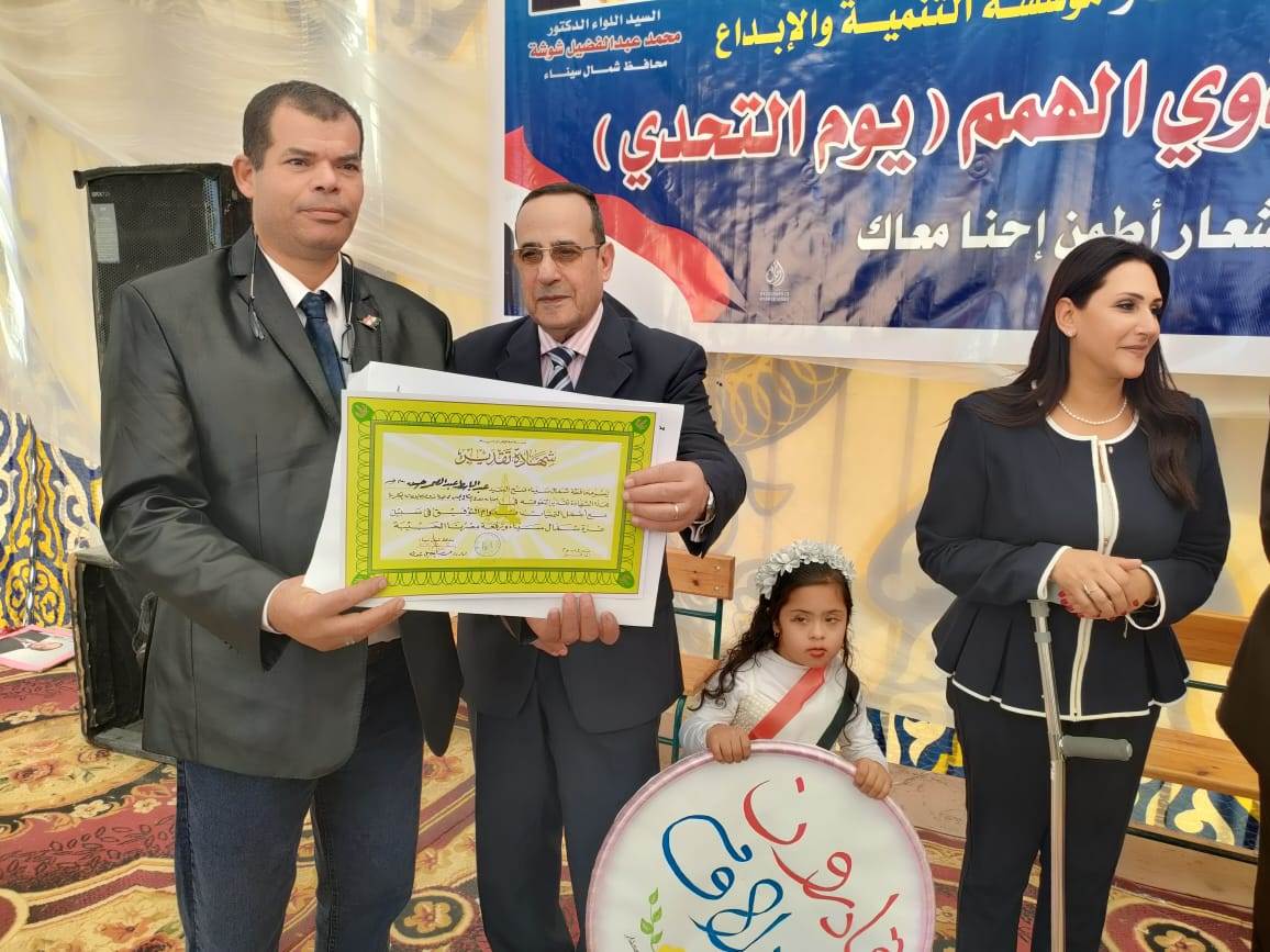 وطالب الجميع بالتكاتف والتعاون من أجل تنمية وتعمير وازدهار محافظة شمال سيناء .. موجها الشكر الى المحافظ لدعم جميع الفئات وخاصة ذوى الهمم .