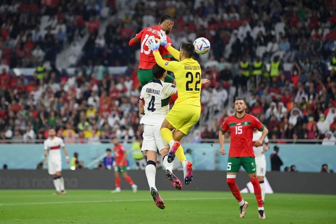 سجل هدف "أسود الأطلس" اللاعب يوسف النصيري، المحترف في صفوف إشبيلة الإسباني في الدقيقة 42 بعد كرة عرضية من يحيى عطية الله ارتقى لها النصيري، وسددها برأسه قوية داخل الشباك، مستغلا خروج خاطئ لدييجو كوستا، حارس منتخب البرتغال.