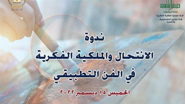 ضمن نشاط وزارة الثقافة، وتحت رعاية الدكتورة نيفين الكيلاني، وزيرة الثقافة؛وبأمانة الدكتور هشام عزمي؛ والكاتب محمد ناصف رئيس الإدارة المركزية للشعب واللجان الثقافية، تعقد لجنة حماية الملكية الفكرية، وبالتعاون مع لجنة الفنون التشكيلية والعمارة، ندوة: "الانتحال والملكية الفكرية في الفن التطبيقي"، وذلك في تمام السادسة مساء يوم الخميس الموافق 15 ديسمبر الحالي، بقاعة المجلس الأعلى للثقافة.