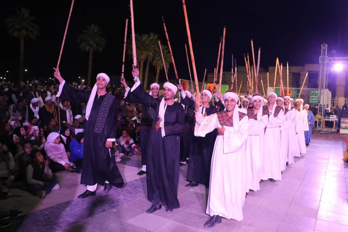 تفاعل الجمهور بشكل كبير مع فرق الفنون الشعبية لمحافظات "بنى سويف، المنيا، أسيوط، سوهاج، قنا، الأقصر، ملوى، الشرقية"، أثناء تقديم رقصاتهم الفنية بعرض الفرح الصعيدى الذي جاء بمصاحبة فرقة النيل للآلات الشعبية، مقدمين من خلاله مزيج للرقص بالعصا مع حركات لعبة التحطيب وبمشاركة لاعبى التحطيب من الفرق وشيوخ اللعبة.