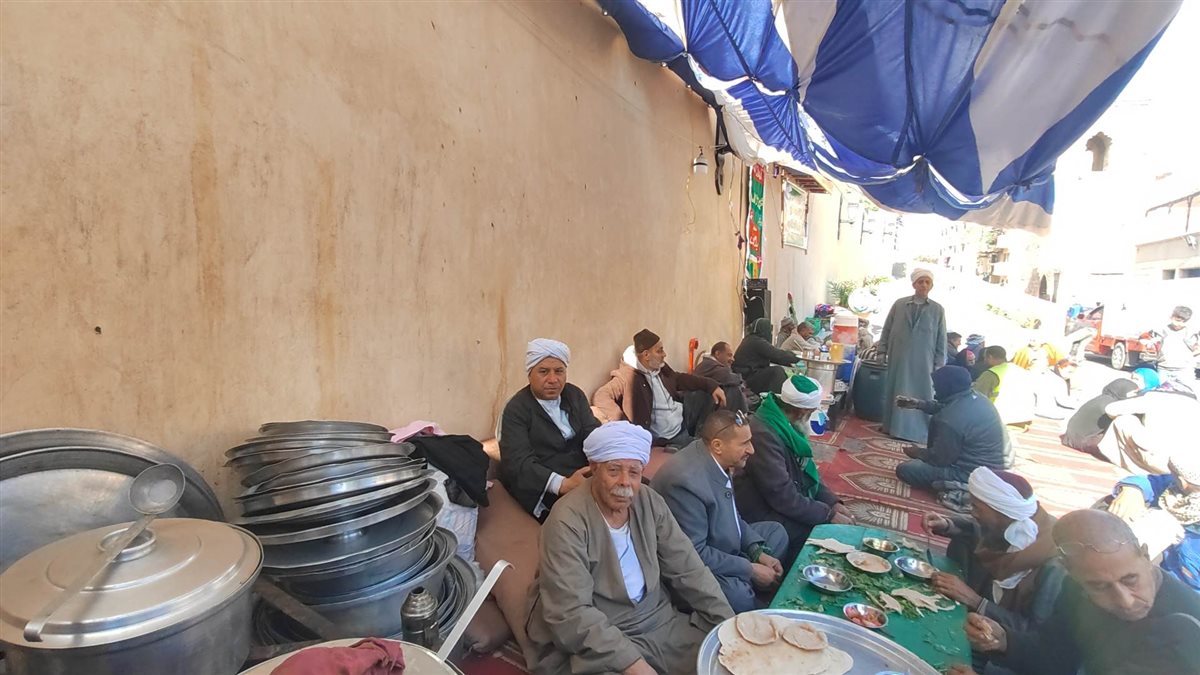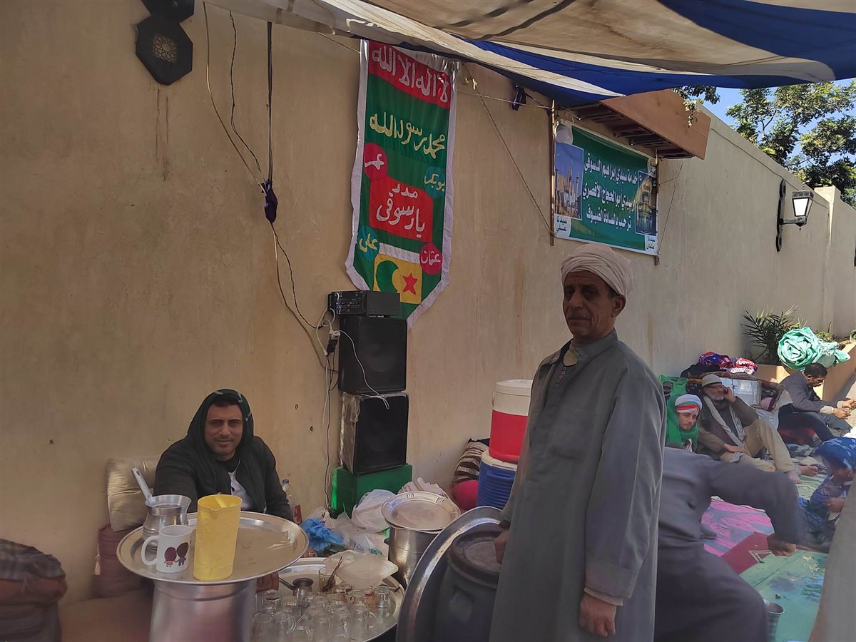 وعلى جانب أسوار المسجد وجدنا خدمة لطريقة الشيخ إبراهيم الدسوقي وسيدي أبو الحجاج الأقصري، حيث أكد كل من الشيخ وائل والشيخ رمضان أن هذه الخدمة كان يقوم بها آباؤهم قبل أن يولدوا، فهم حريصون كل الحرص على التواجد في موالد آل بيت النبي، حيث يقدمون أطعمة ومشروبات لرواد المولد إكراما لهم، حيث إن هناك الكثير مما يتوافد من أنحاء مصر، وكذا الوطن العربي.