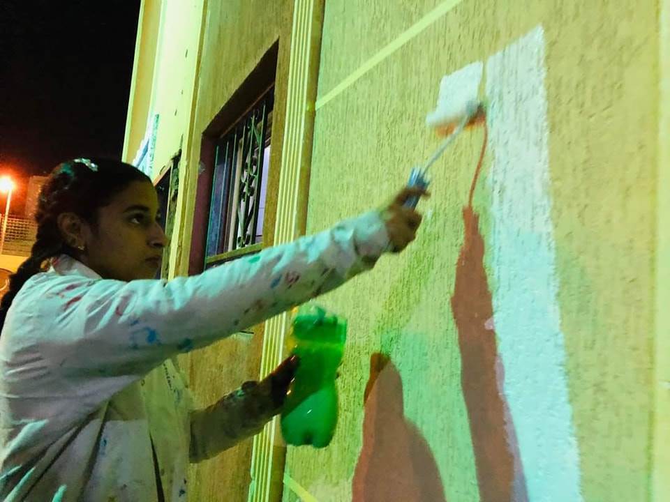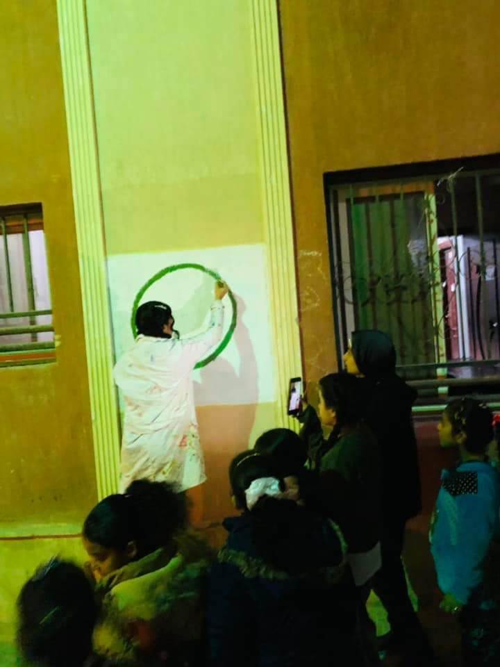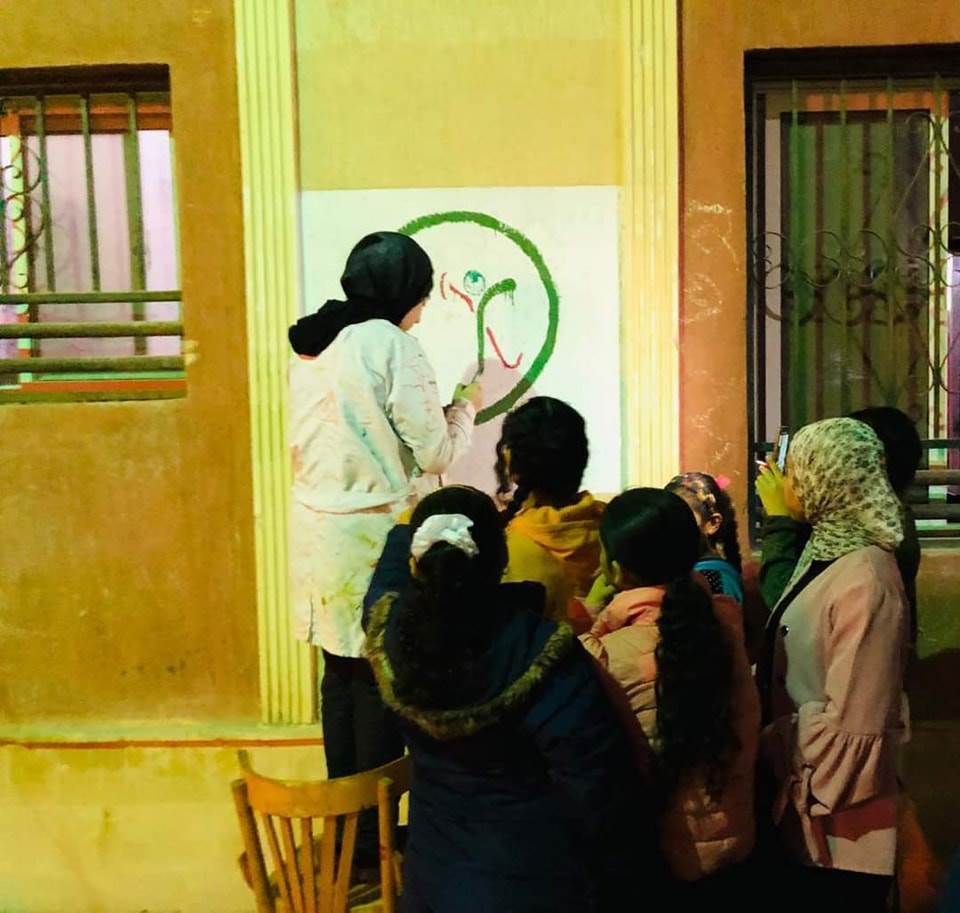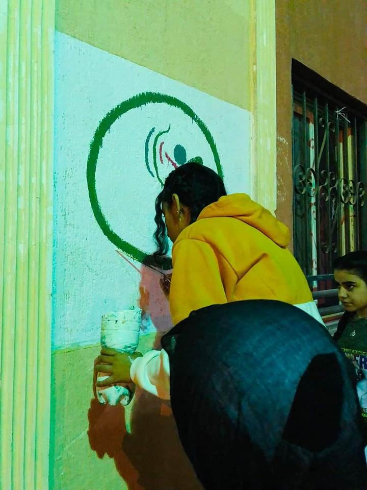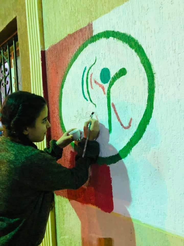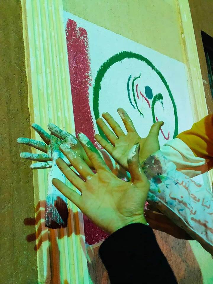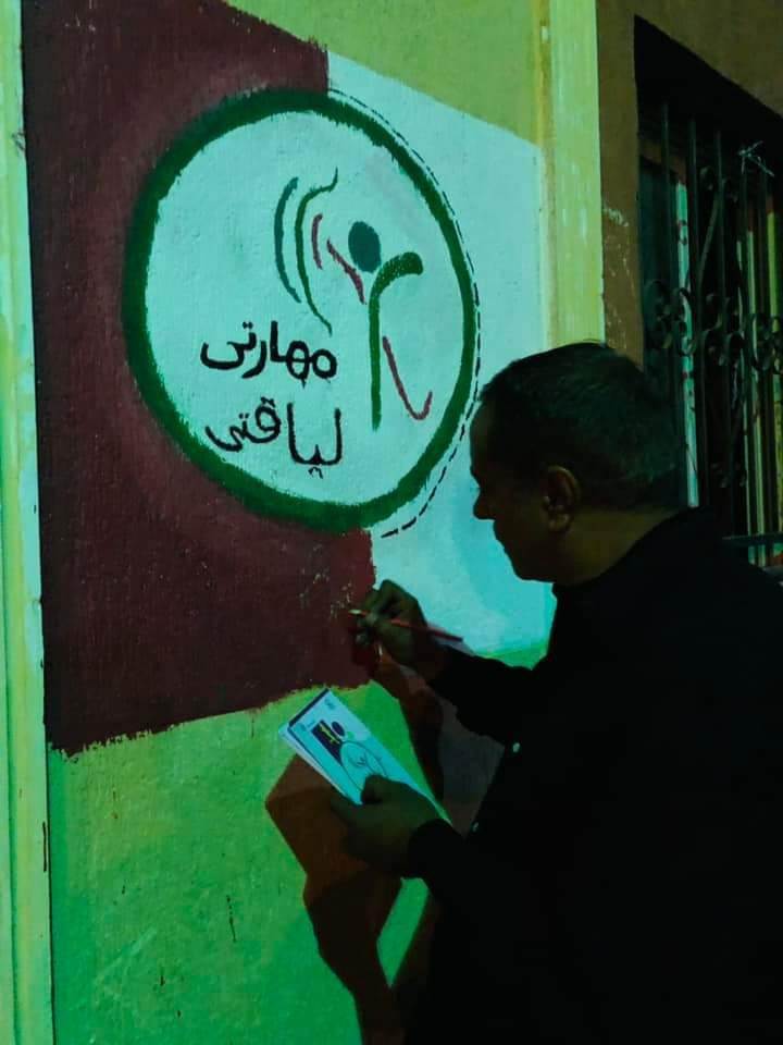 كما قامت الفتيات بعمل جدارية جرافيت بأيديهن لشعار مهارتي لياقتي، وذلك لأهمية كسب المهارات الحياتية والعمل سويا.. إذ لا بد للإنسان من التزود بالمعارف والعلوم كخطوة أساسية من خطوات اكتساب المهارات الحياتية على أهمية العمل التطوعي والمبادرة ودور الفرد في المجتمع، وأن لكل شخص بصمة وأثر لتشجيعهم على المشاركة الفعالة بمساعدة أشرف الكراني وناصر العرادي.