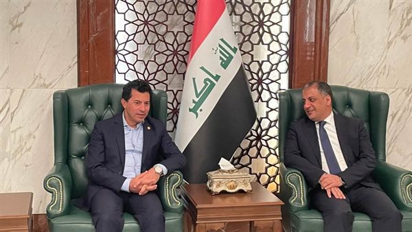 كان فى استقبال الدكتور أشرف صبحى نظيره العراقي أحمد المبرقع، رئيس اللجنة العليا المشرفة على بطولة خليجي (٢٥).