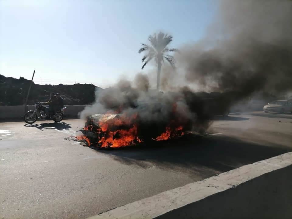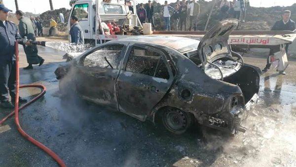 بالصور.. إصابة شخص وتفحم سيارة في حادث تصادم بالدقهلية