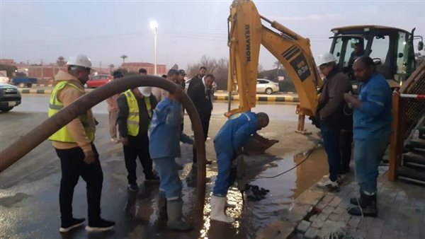 متابعة الحلول لمشكلة تسريب مياه بالطريق الدائري ببنى سويف