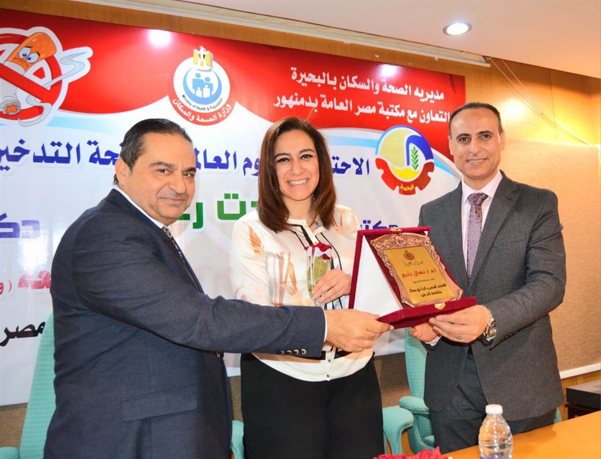 وفى ختام الاحتفالية تم تكريم الدكتورة نهال بلبع لدعمها لكافه الجهود المبذولة لمكافحة التدخين، كما تم تكريم رئيس جامعة دمنهور ووكيل وزارة الصحه والشباب والرياضة وعدد من القيادات التنفيذيه.