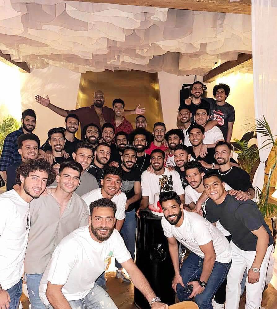 محمد صلاح يحتفل مع نجوم الكرة المصرية بعيد ميلاده الـ31 على أنغام سطلانة
